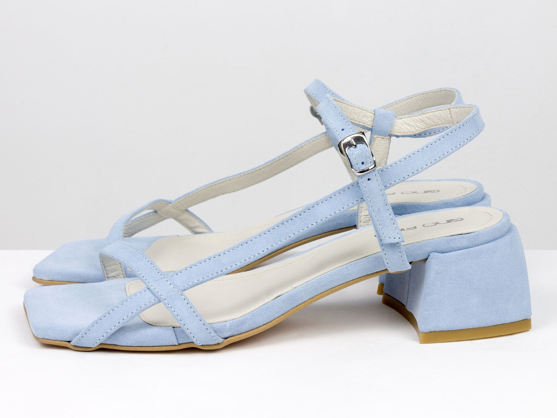 Дизайнерские голубые босоножки на каблуке из натуральной итальянской замши Gino Figini
