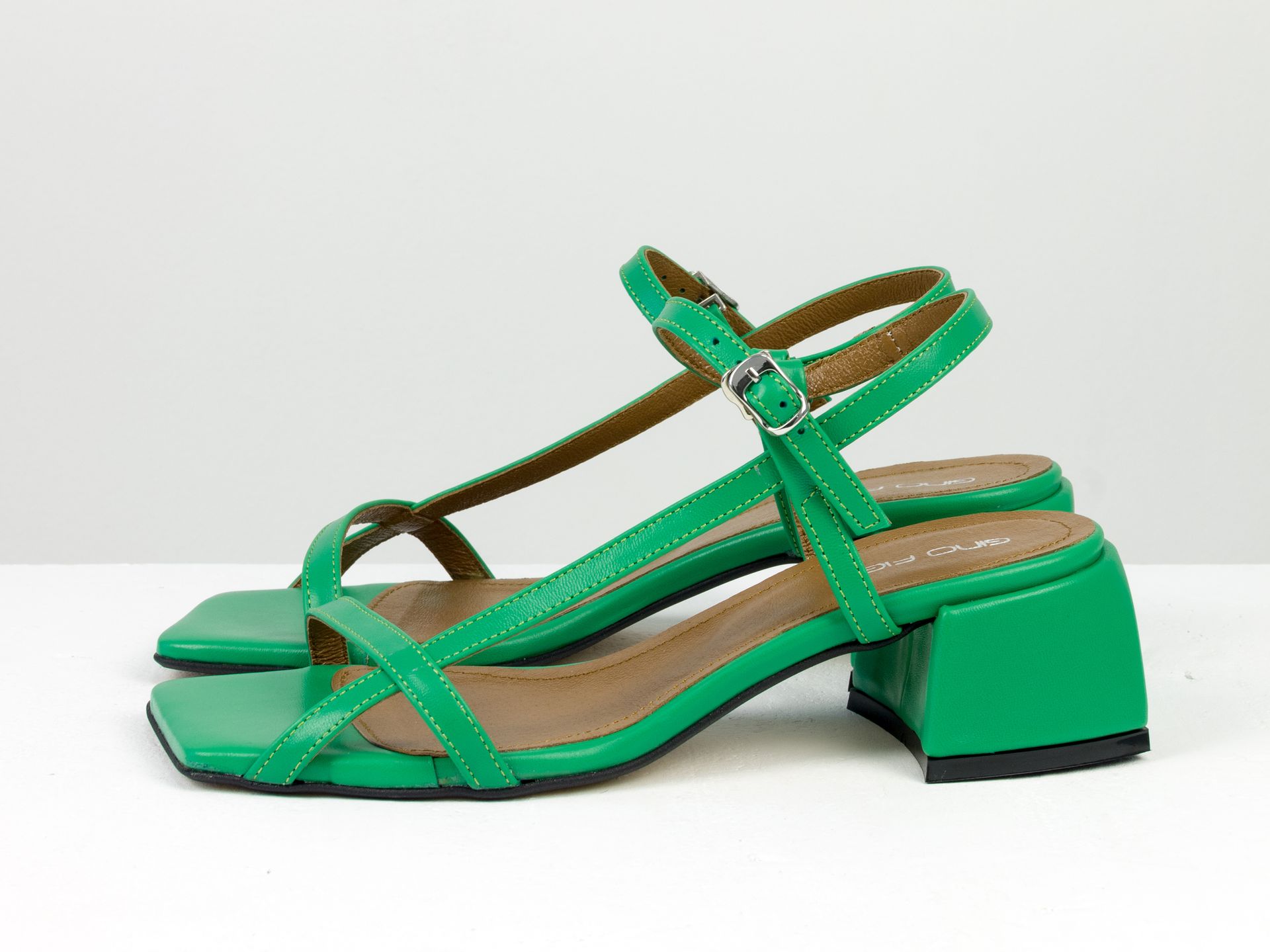 Дизайнерские зеленые босоножки на каблуке из натуральной итальянской кожи цвета Gino Figini