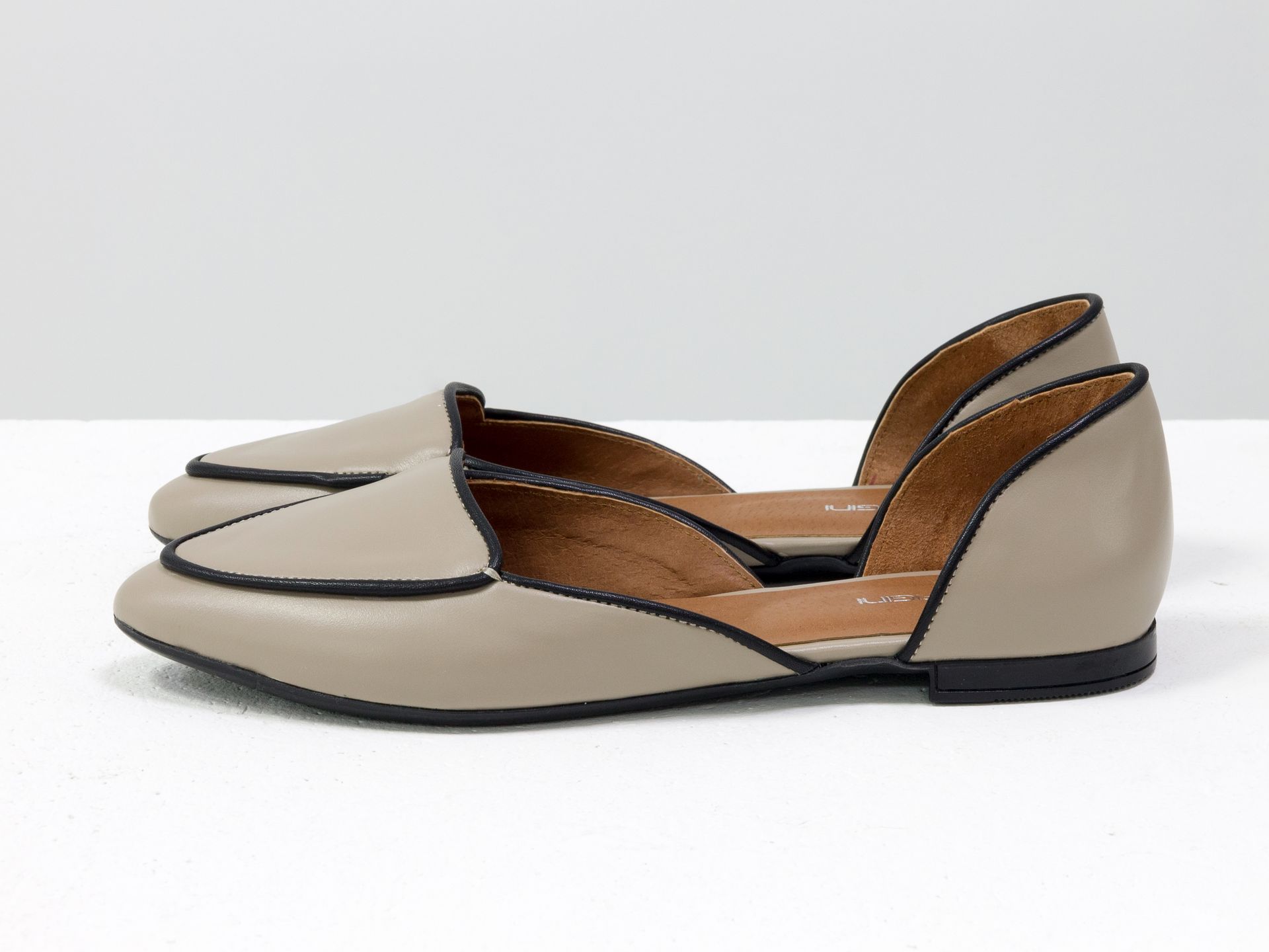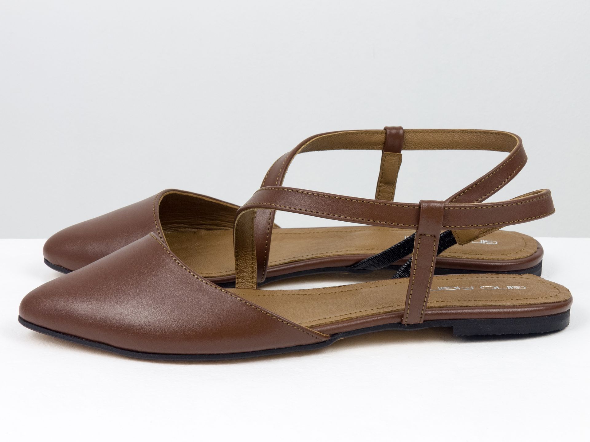 Женские балетки на низком ходу из натуральной кожи коричневого цвета с открытой пяткой Gino Figini