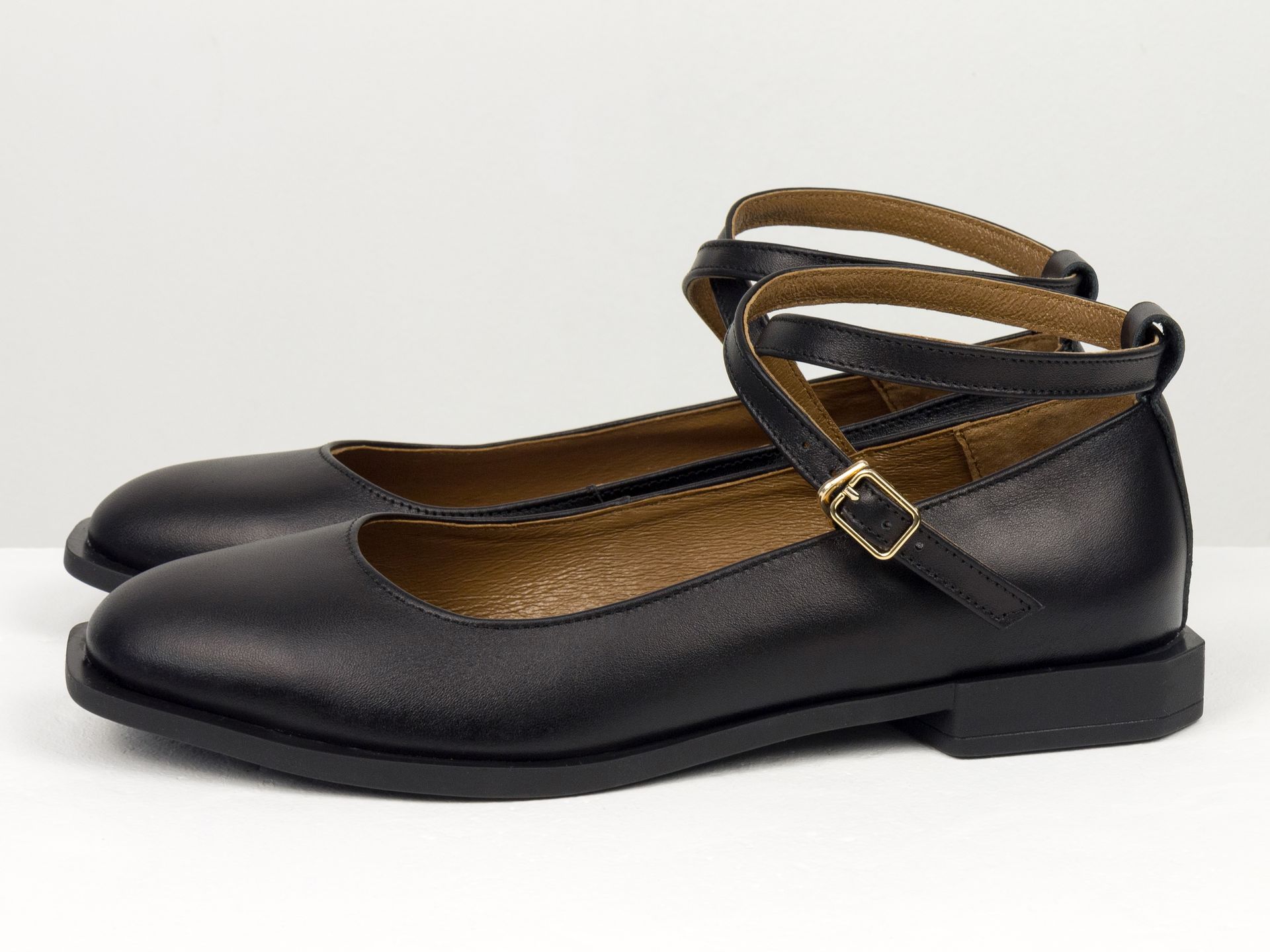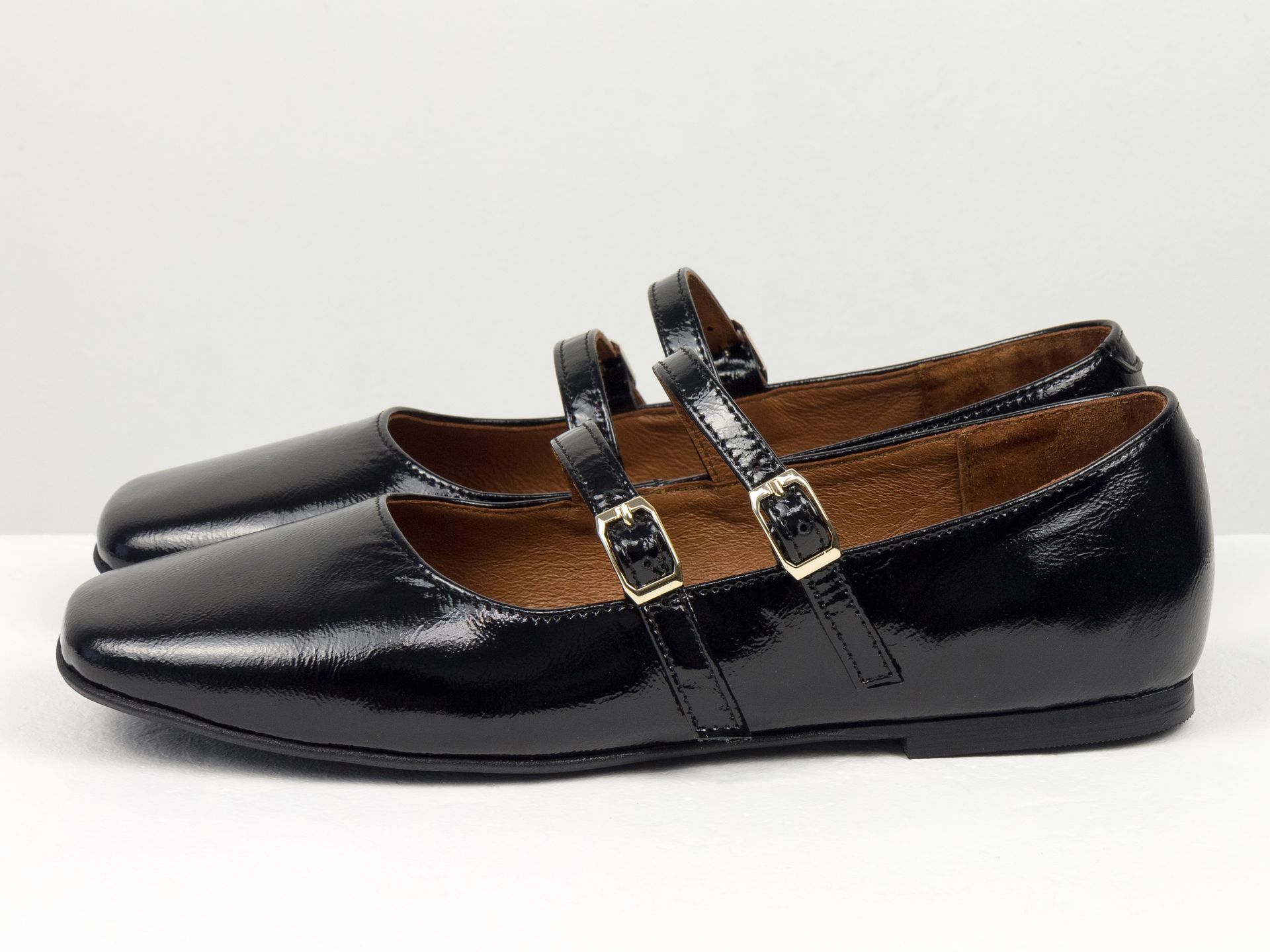 Женские балетки Мэри Джейн на низком ходу из натуральной кожи наплак черного цвета с двумя ремешками Gino Figini
