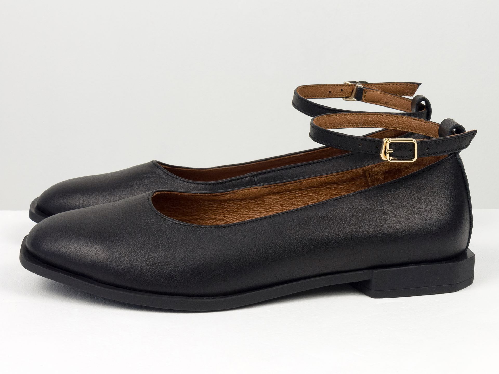 Женские черные балетки из натуральной кожи и ремешком Gino Figini