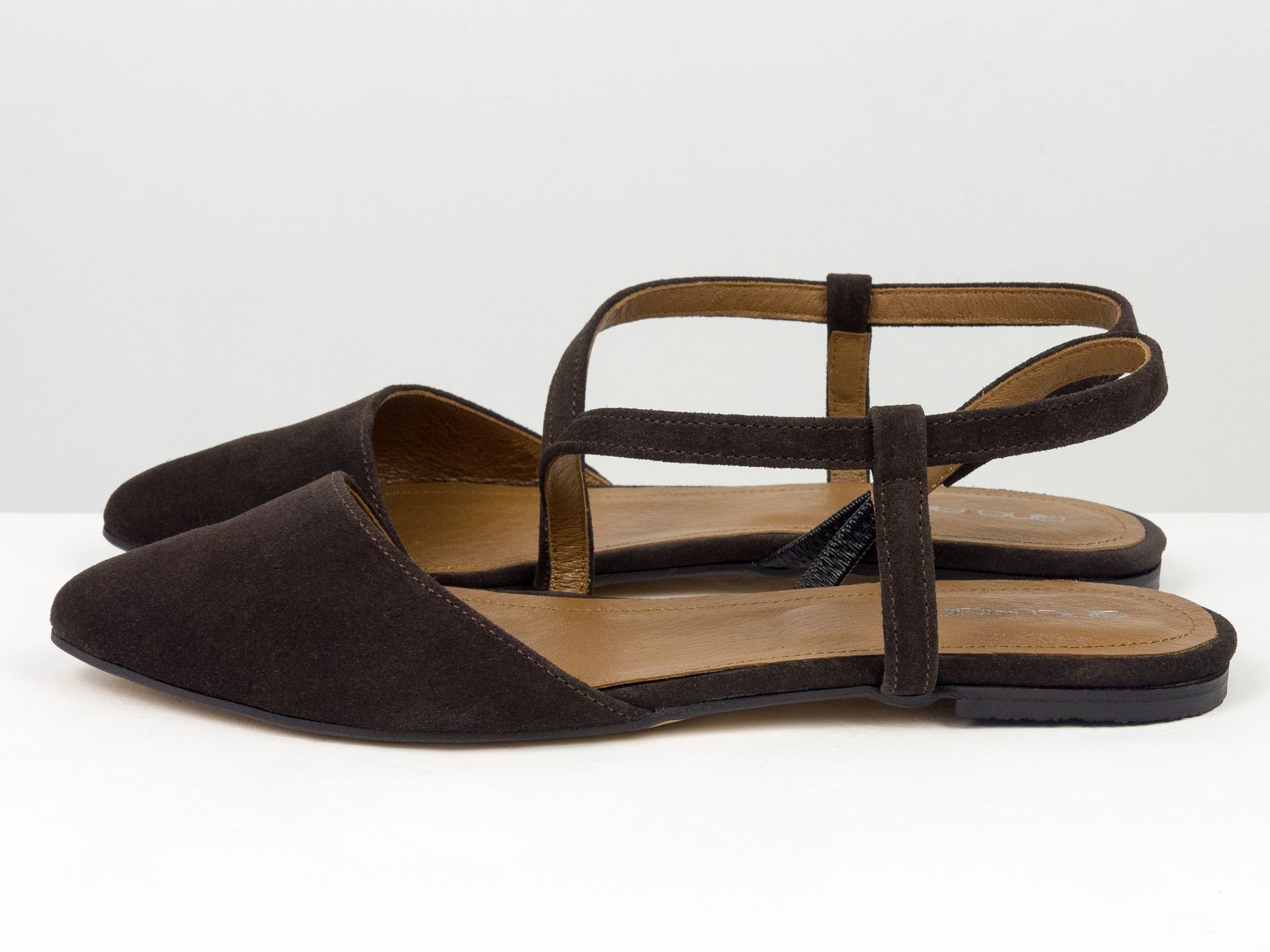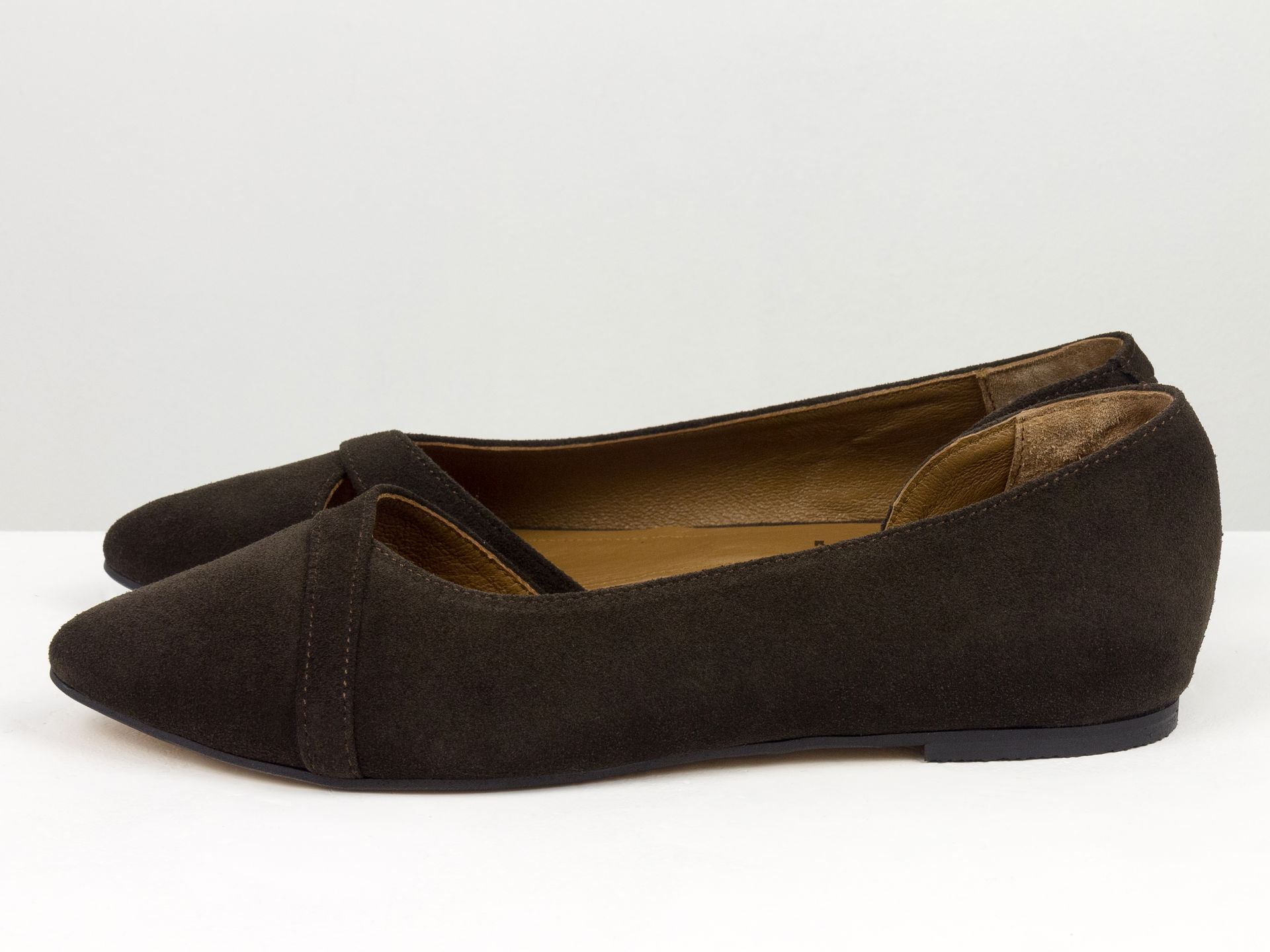 Женские балетки на низком ходу из натуральной замши коричневого цвета с открытой пяткой Gino Figini