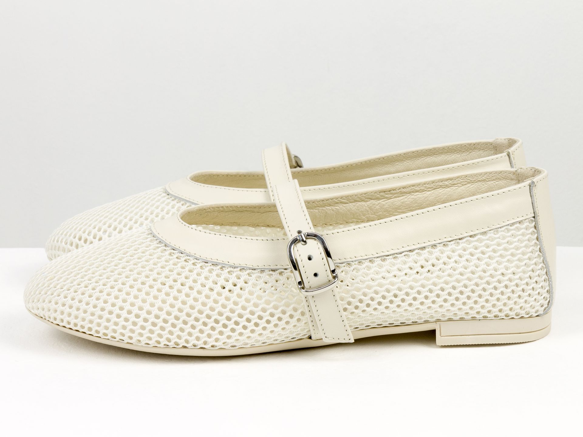Женские балетки на низком ходу из натуральной кожи молочного цвета с сеткой Gino Figini