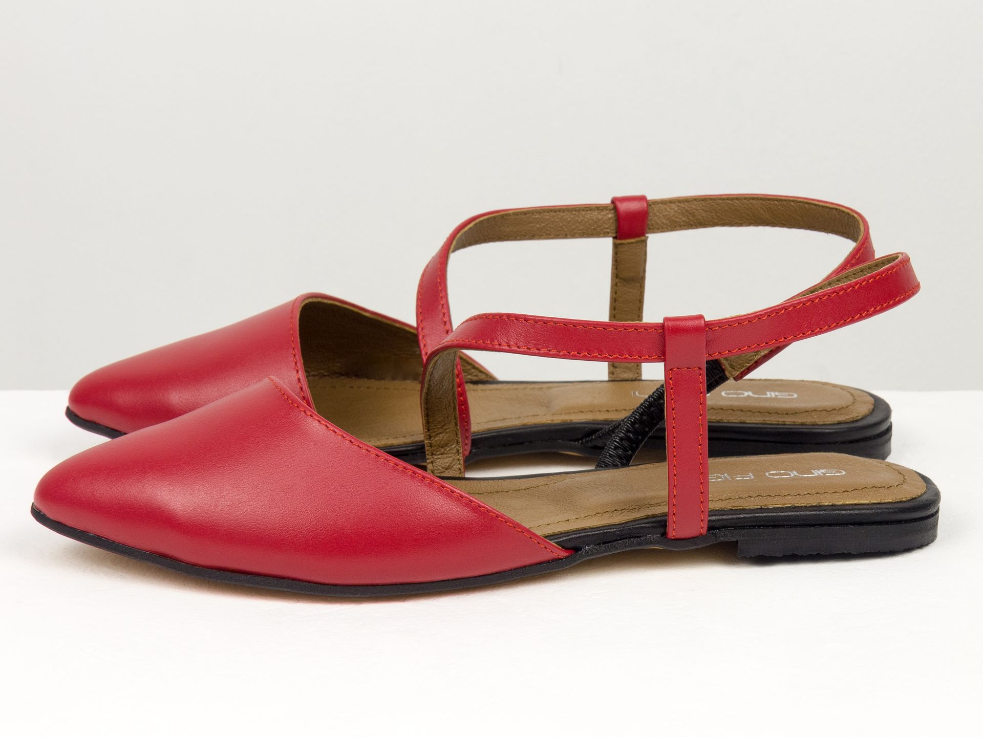 Женские балетки на низком ходу из натуральной кожи красного цвета с открытой пяткой Gino Figini