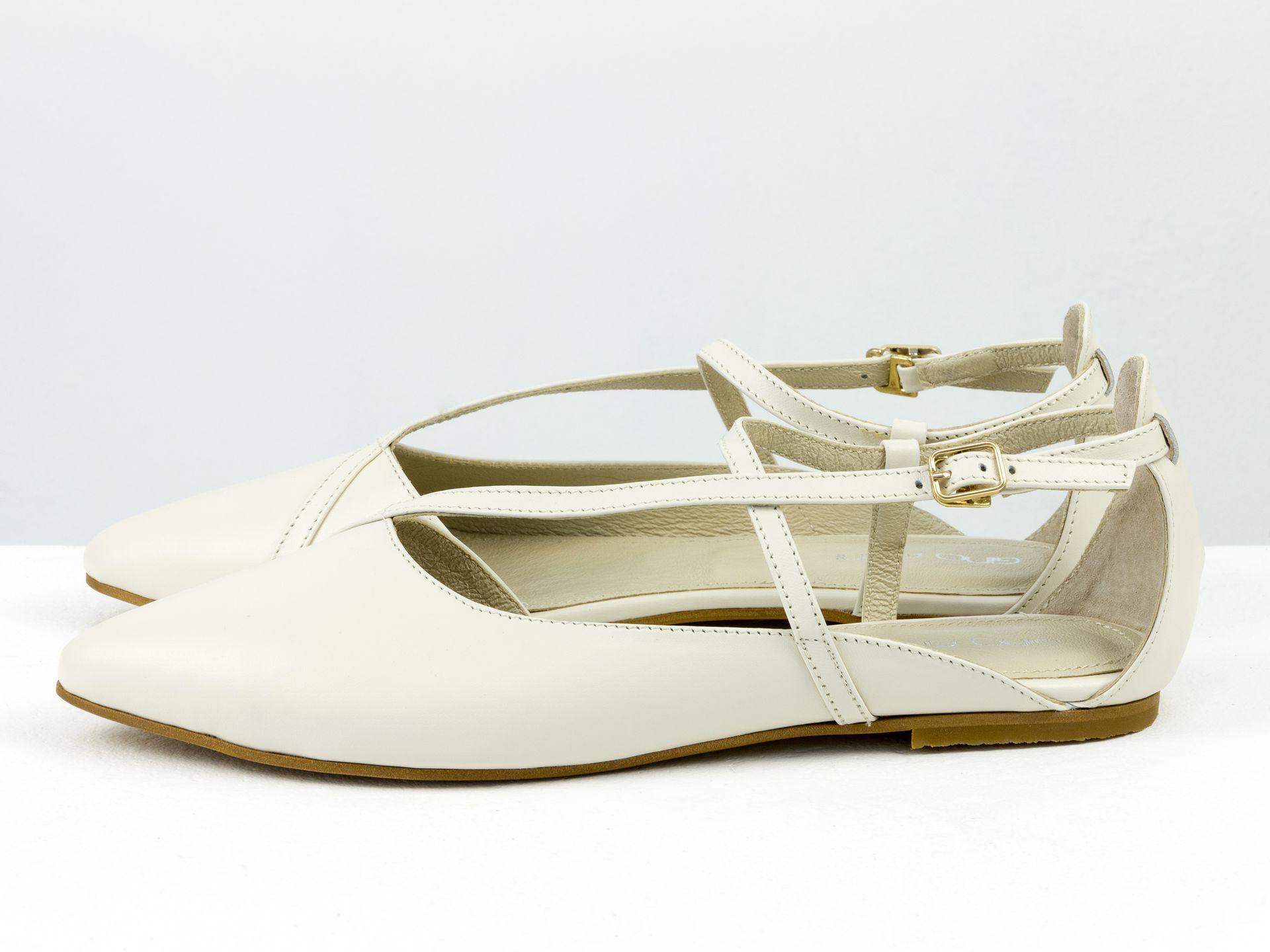 Женские молочные туфли на низком ходу из натуральной кожи с ремешками и застежкой Gino Figini