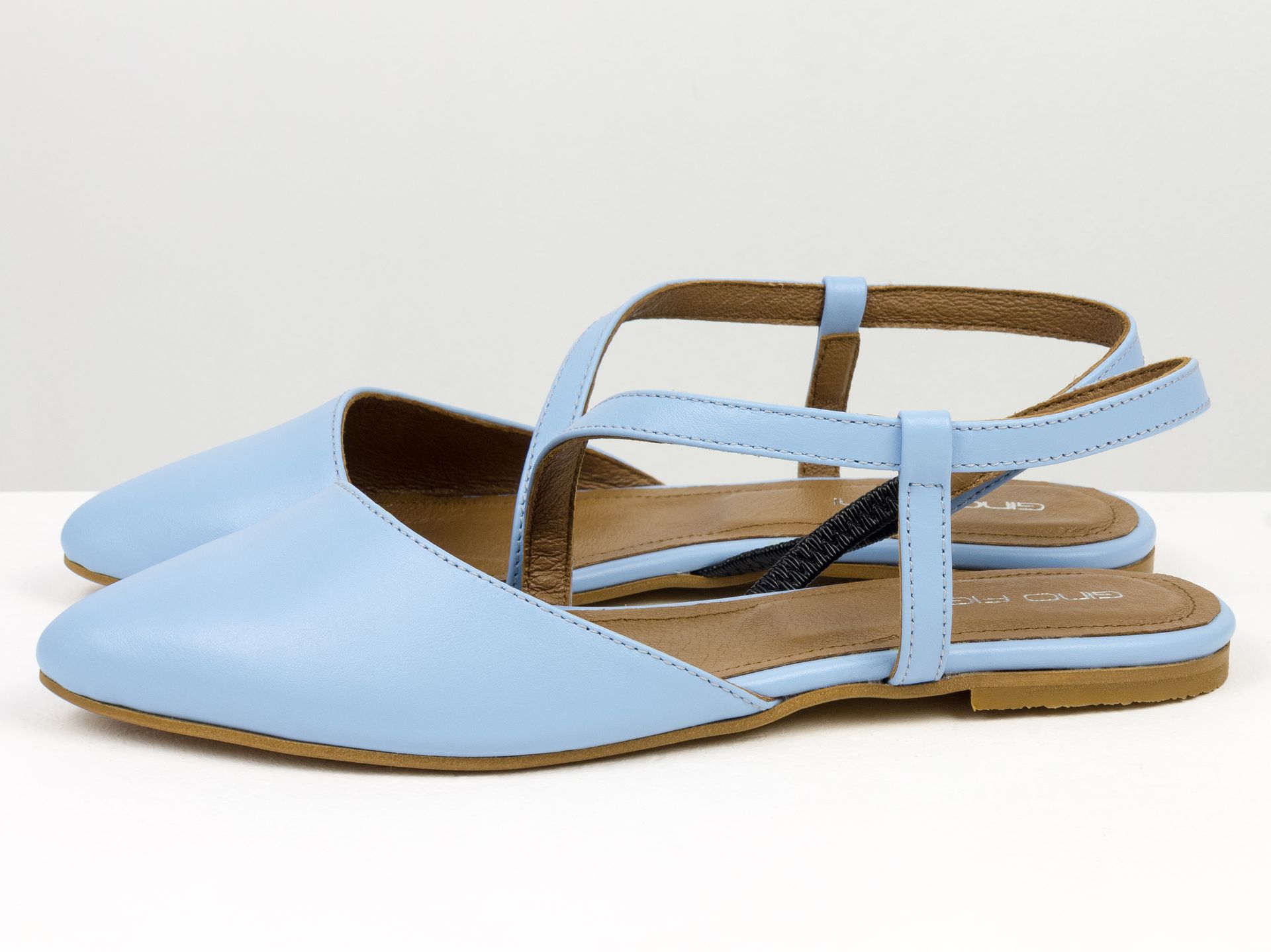 Женские балетки на низком ходу из натуральной кожи голубого цвета с открытой пяткой Gino Figini