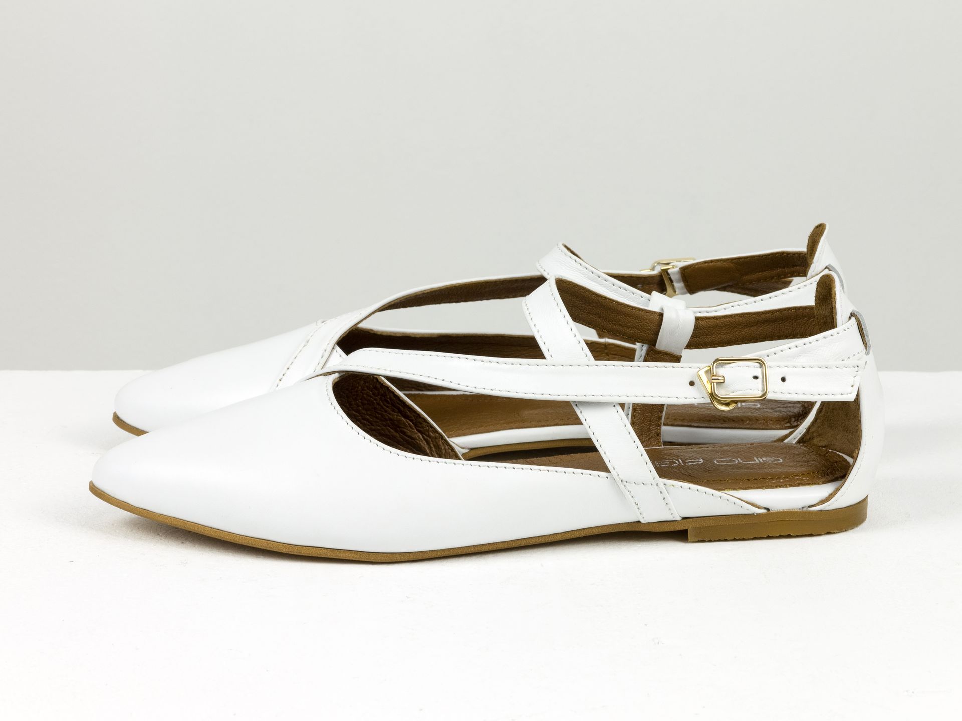 Женские белые туфли на низком ходу из натуральной кожи с ремешками и застежкой Gino Figini