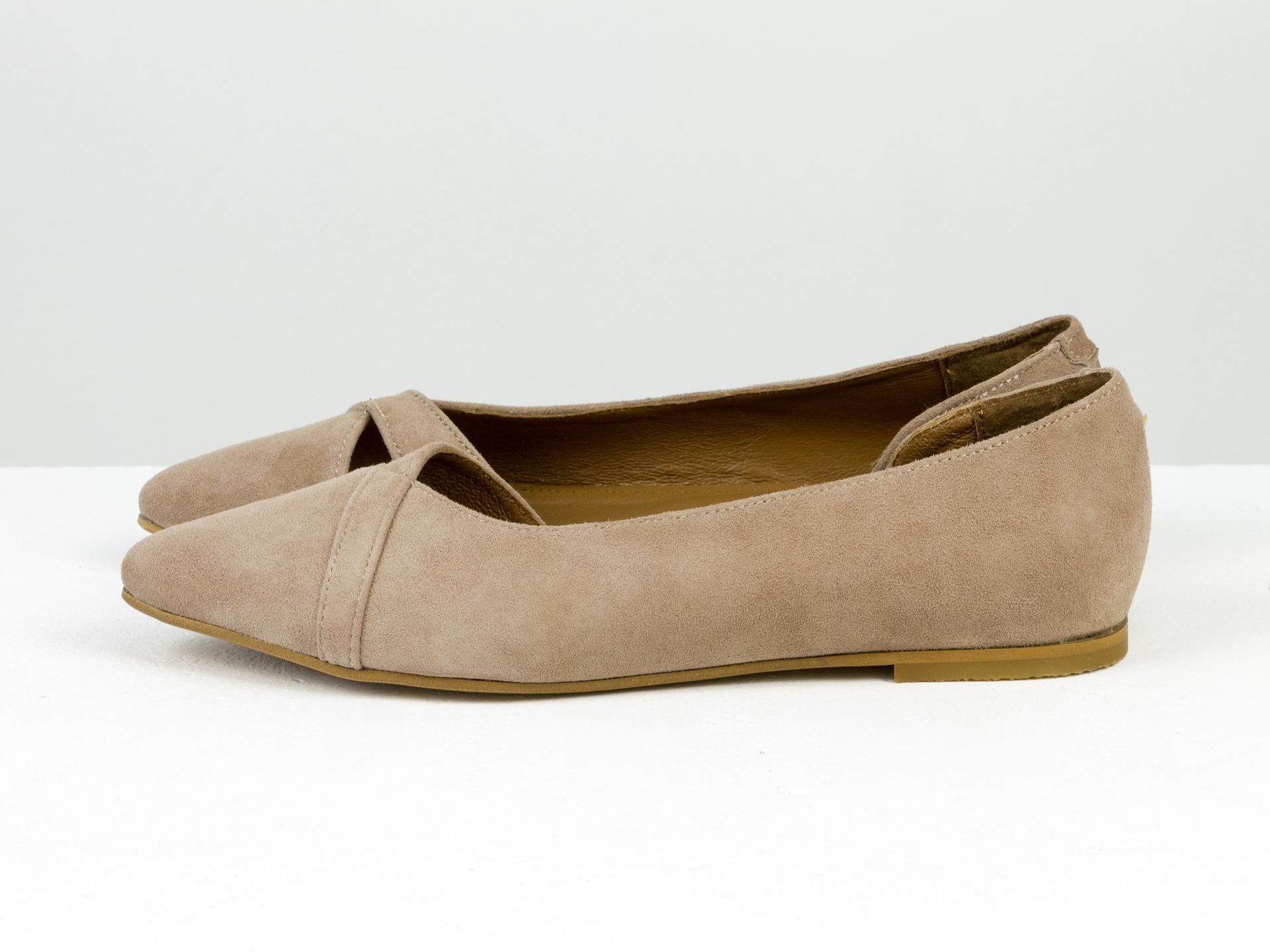 Женские балетки на низком ходу из натуральной замши бежевого цвета Gino Figini