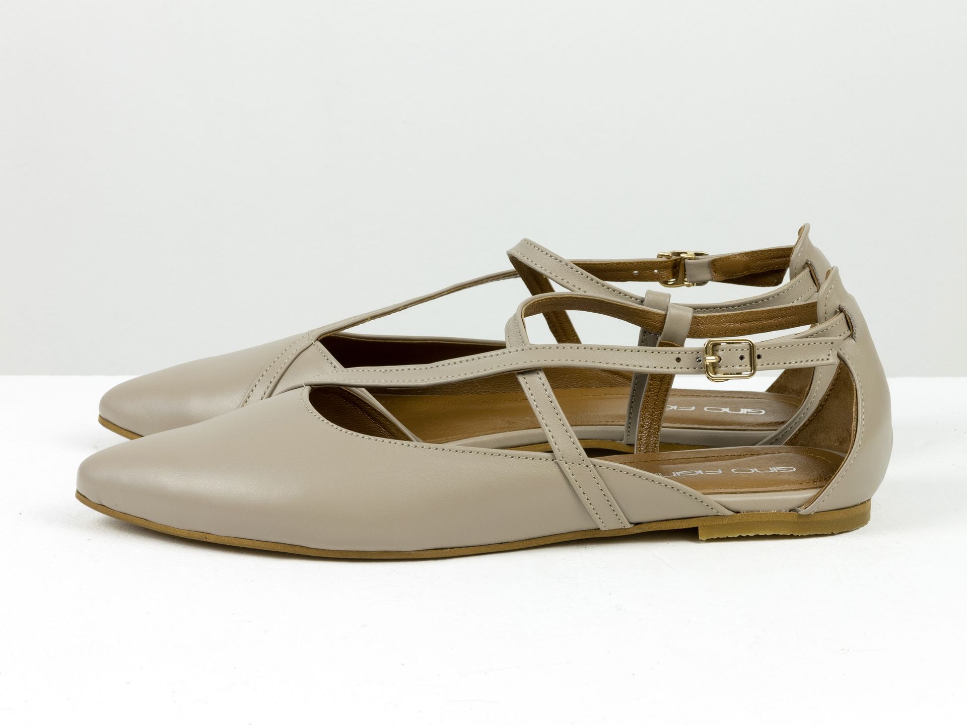Женские бежевые туфли на низком ходу из натуральной кожи с ремешками и застежкой Gino Figini