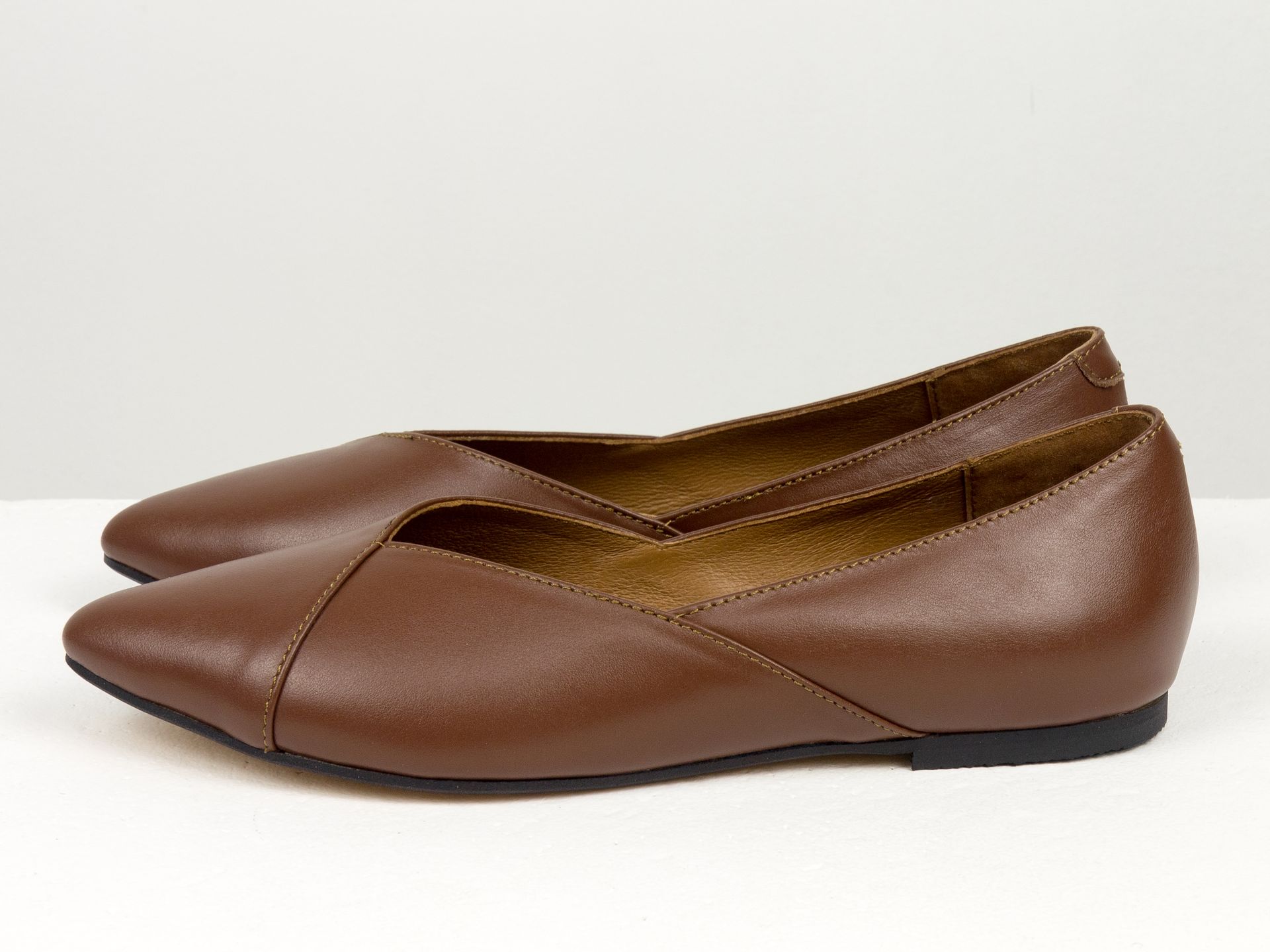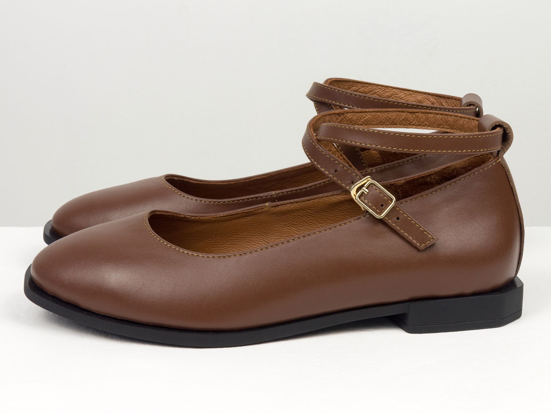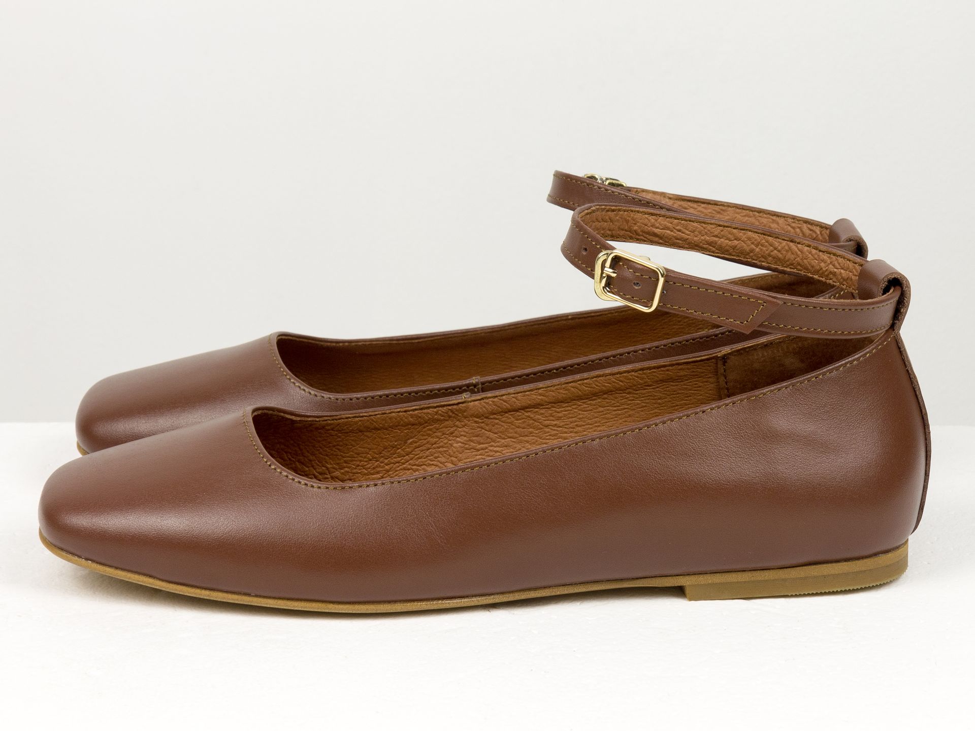 Женские коричневые балетки из натуральной кожи и ремешком Gino Figini
