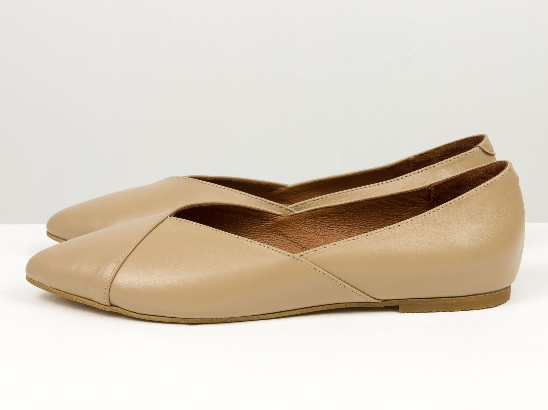 Женские балетки на низком ходу из натуральной мягкой кожи бежевого цвета Gino Figini