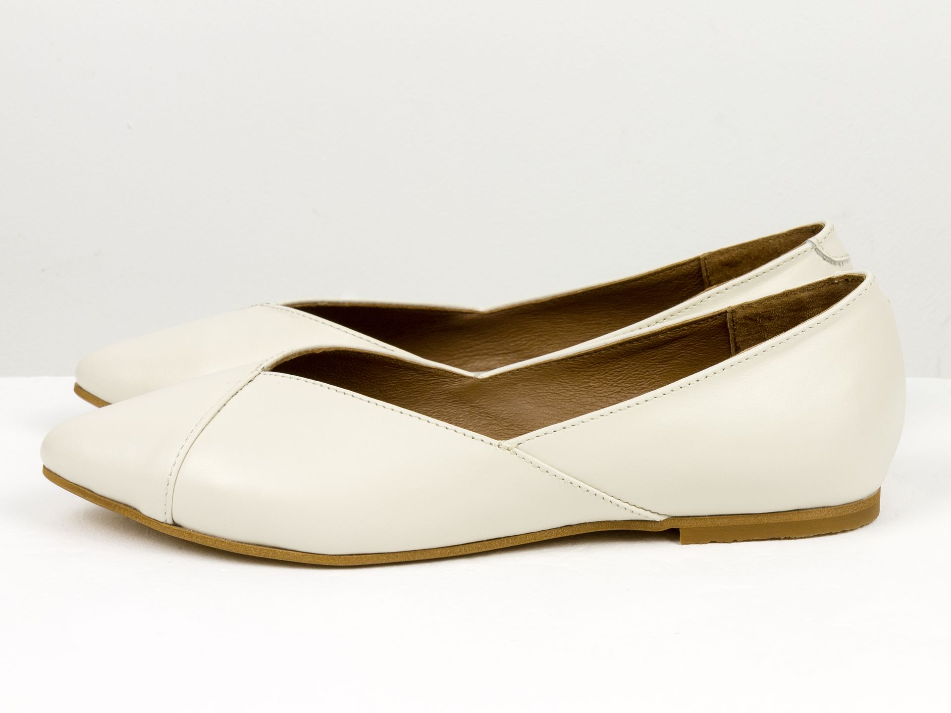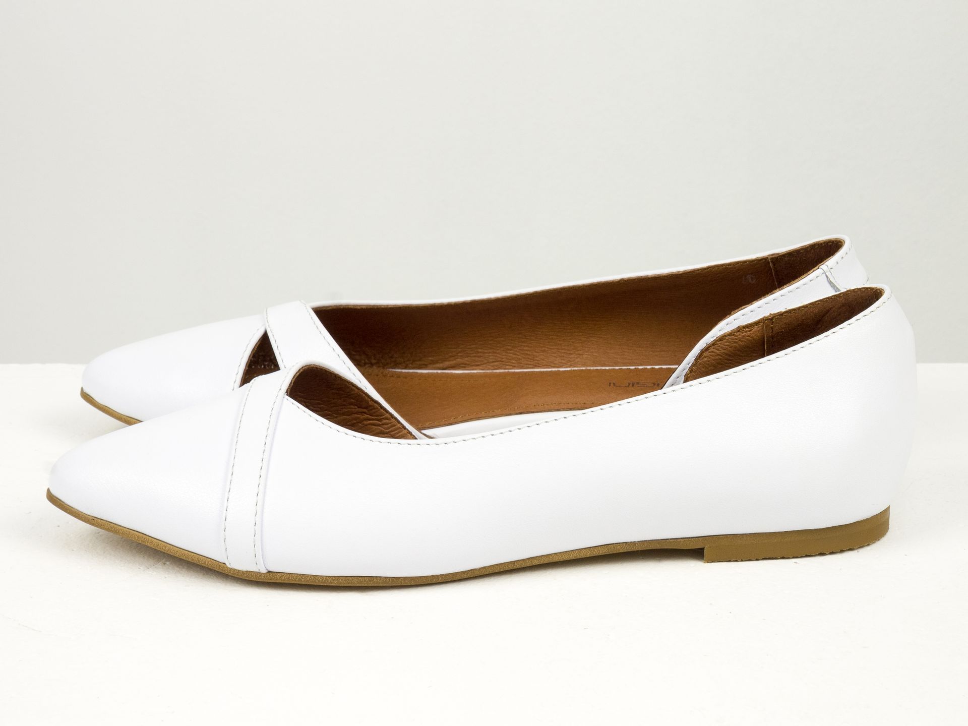 Женские балетки на низком ходу из натуральной кожи белого цвета Gino Figini