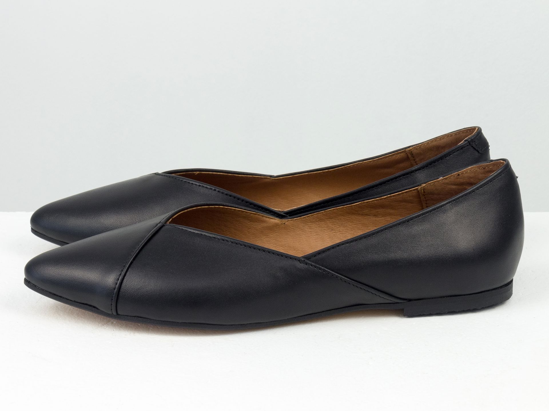 Женские туфли на низком ходу из натуральной кожи черного цвета Gino Figini