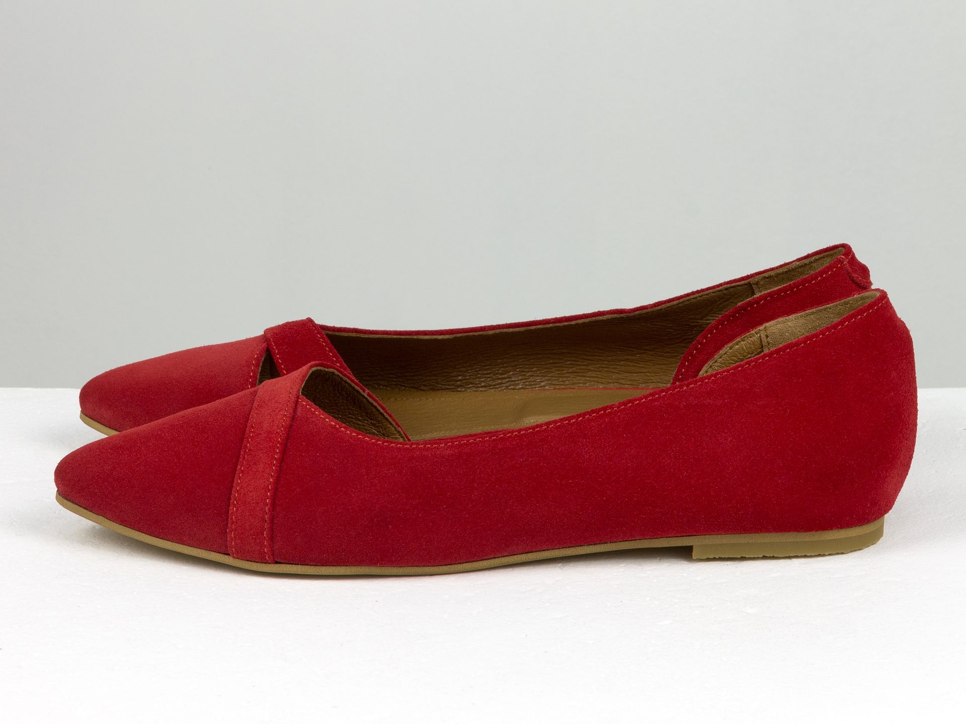 Женские туфли на низком ходу из натуральной замши красного цвета Gino Figini