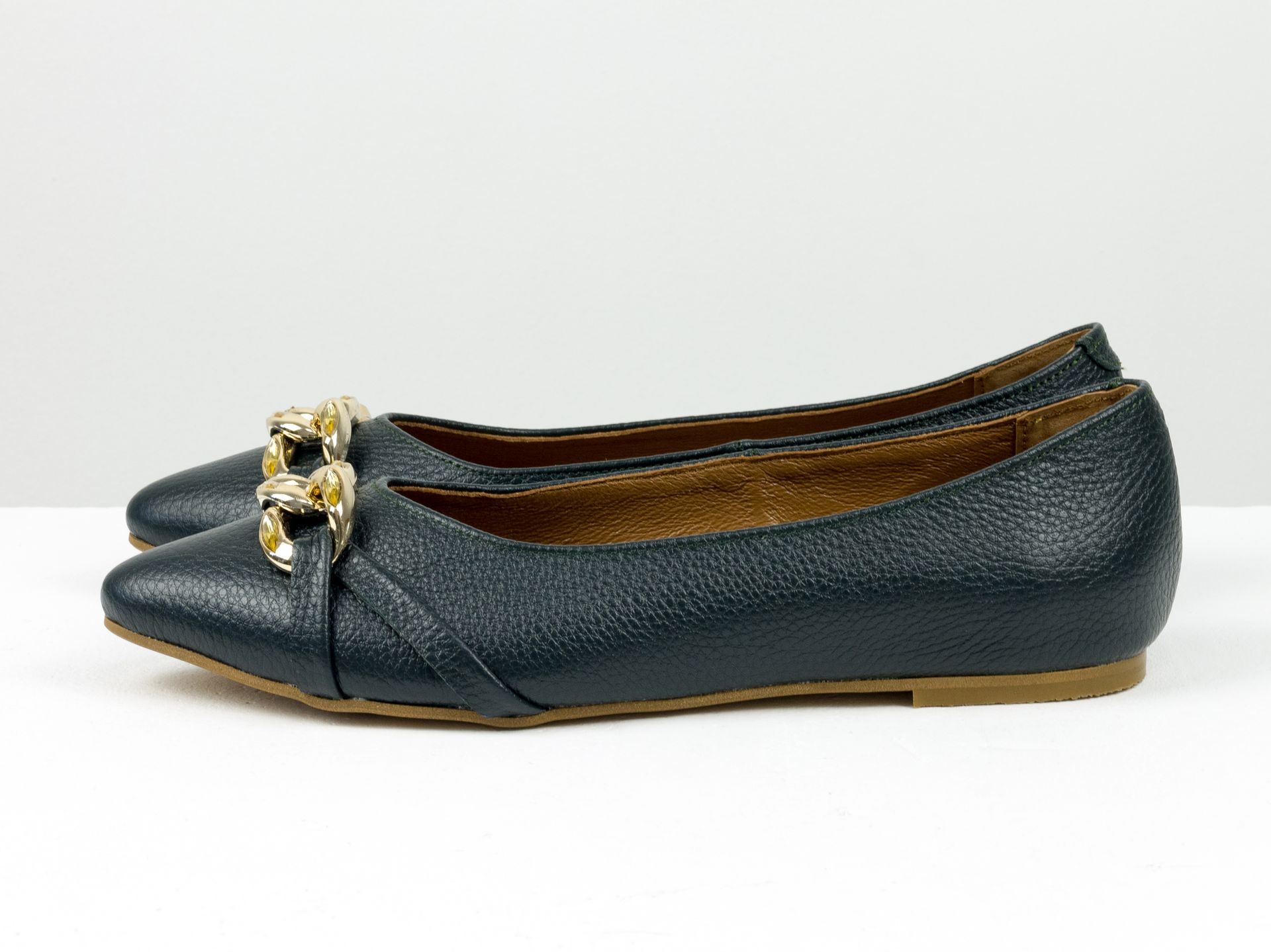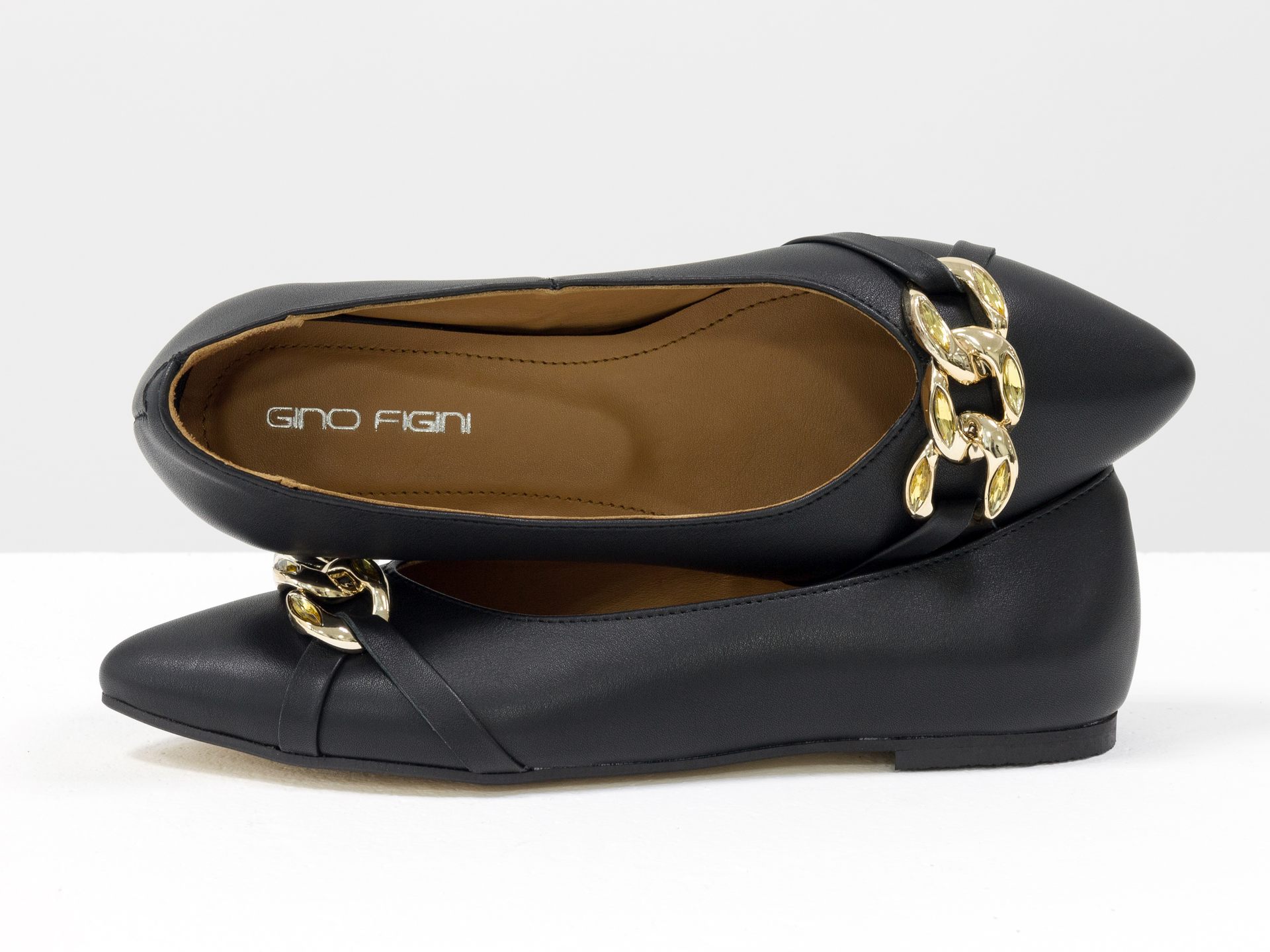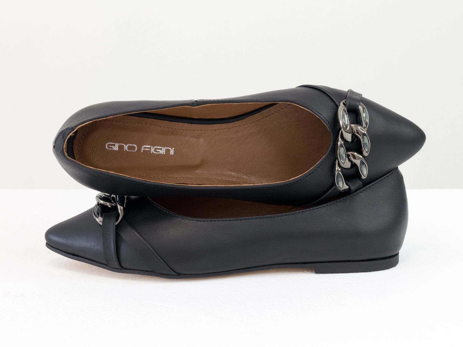 Женские туфли на низком ходу из натуральной кожи с золотой цепочкой Gino Figini
