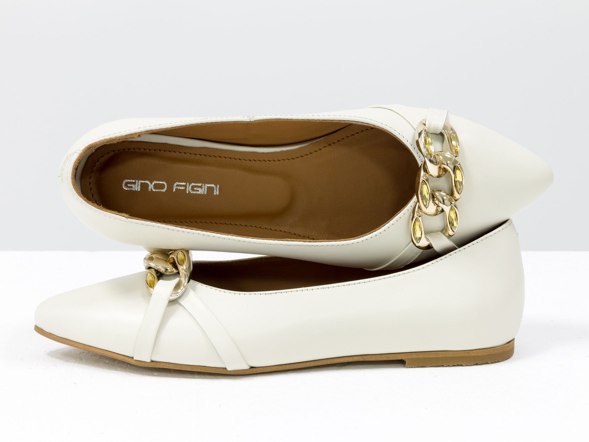 Женские туфли на низком каблуке из натуральной молочной кожи с золотой фурнитурой Gino Figini