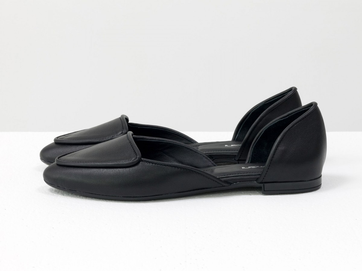 Туфли женские на низком ходу из черной натуральной кожи с фурнитурой темный никель Gino Figini