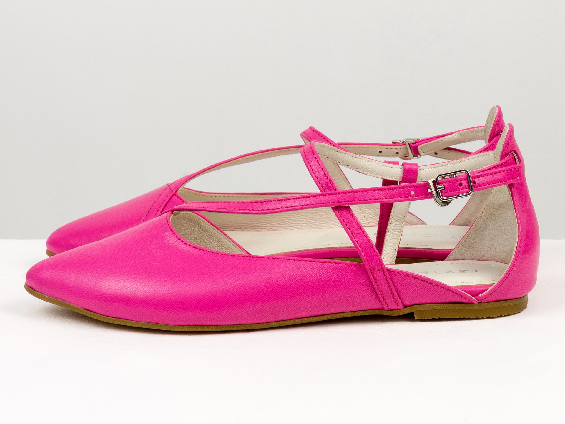 Женские малиновые туфли на низком ходу из натуральной кожи с ремешками и застежкой Gino Figini