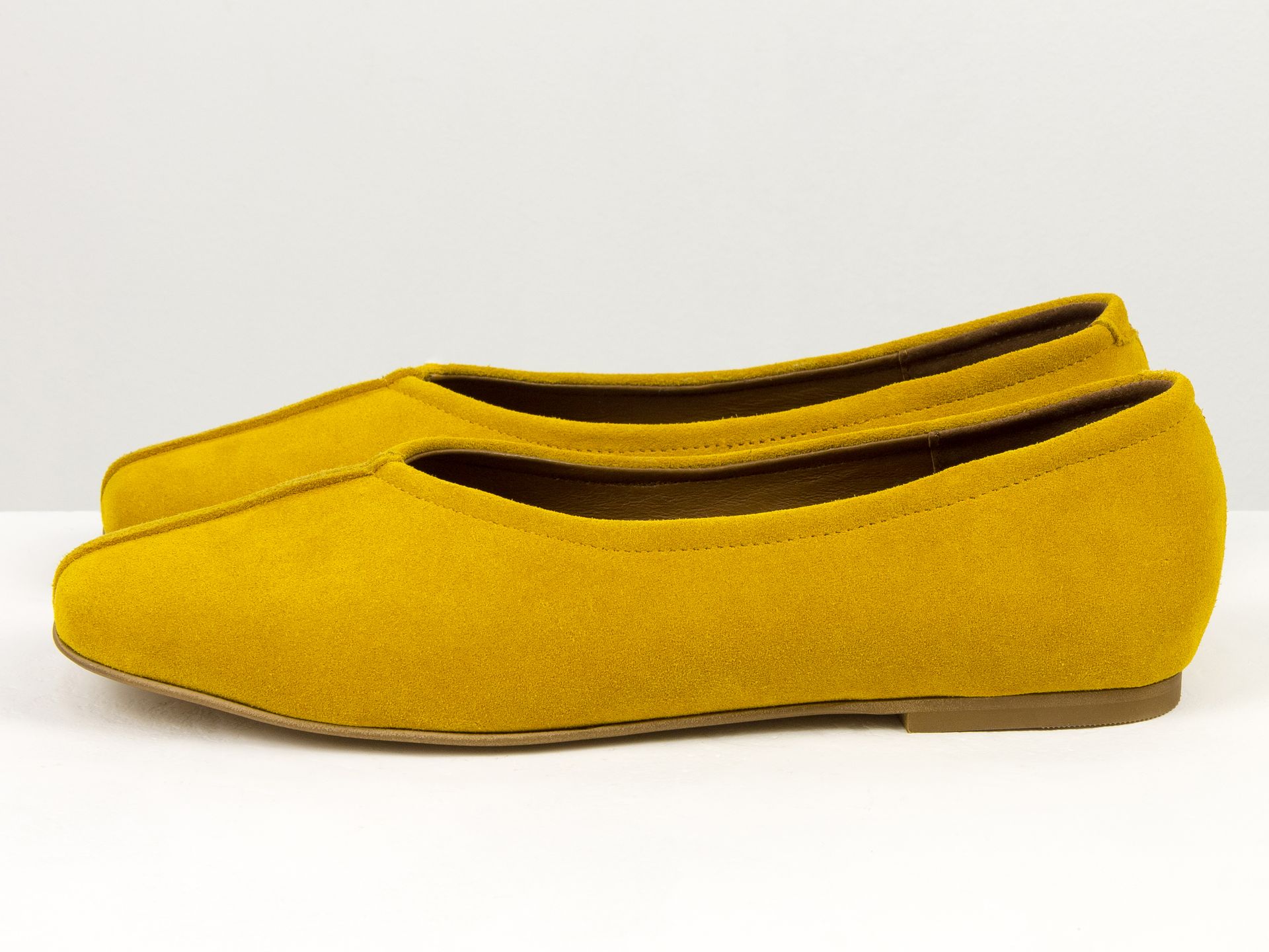 Женские туфли на низком ходу из натуральной замши горчичного цвета с кантом Gino Figini