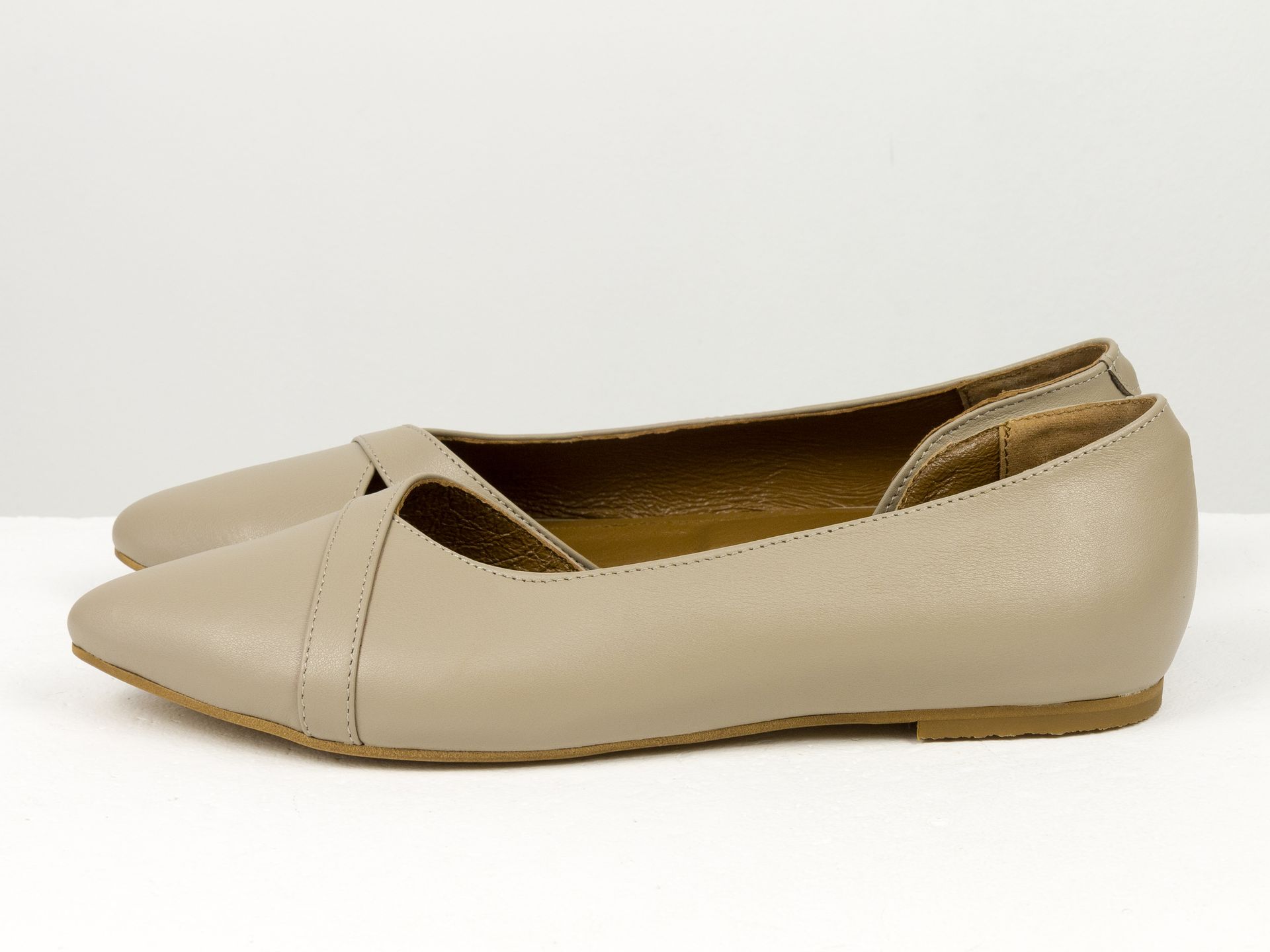 Женские туфли на низком ходу из натуральной кожи бежевого цвета Gino Figini