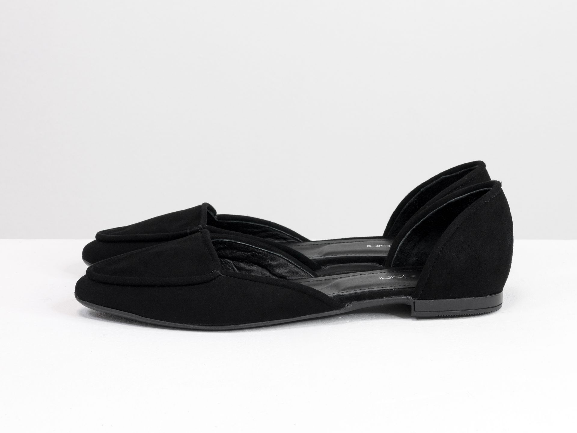 Черные туфли-лодочки на низком каблуке из натуральной замши Gino Figini