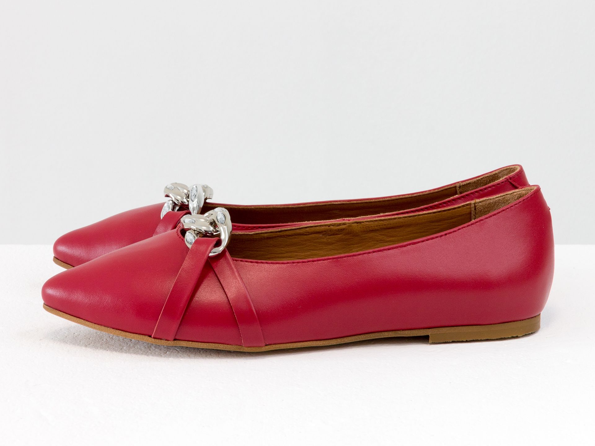 Женские туфли на низком каблуке из натуральной красной кожи с серебряной фурнитурой Gino Figini