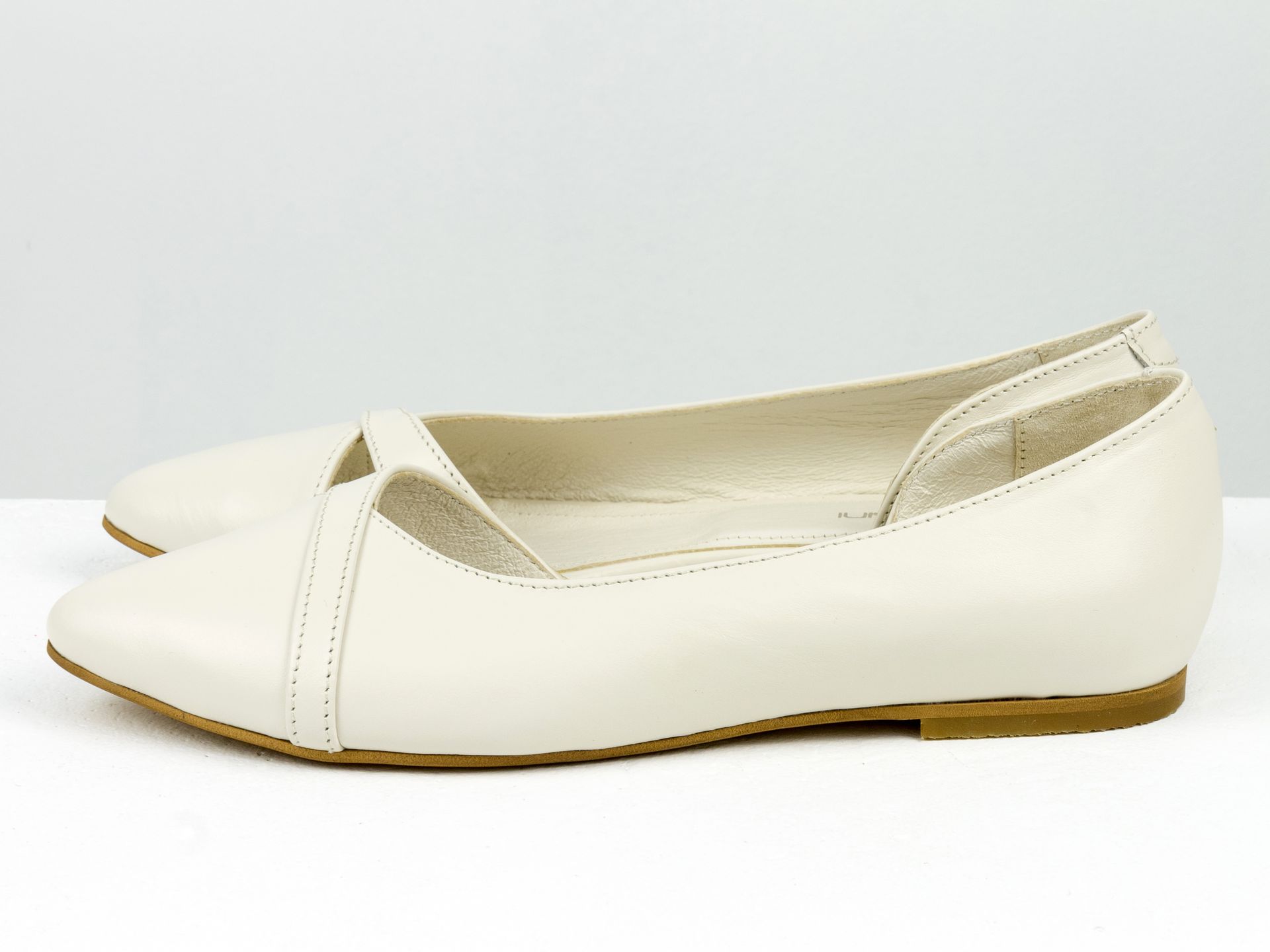 Женские туфли на низком ходу из натуральной кожи молочного цвета Gino Figini