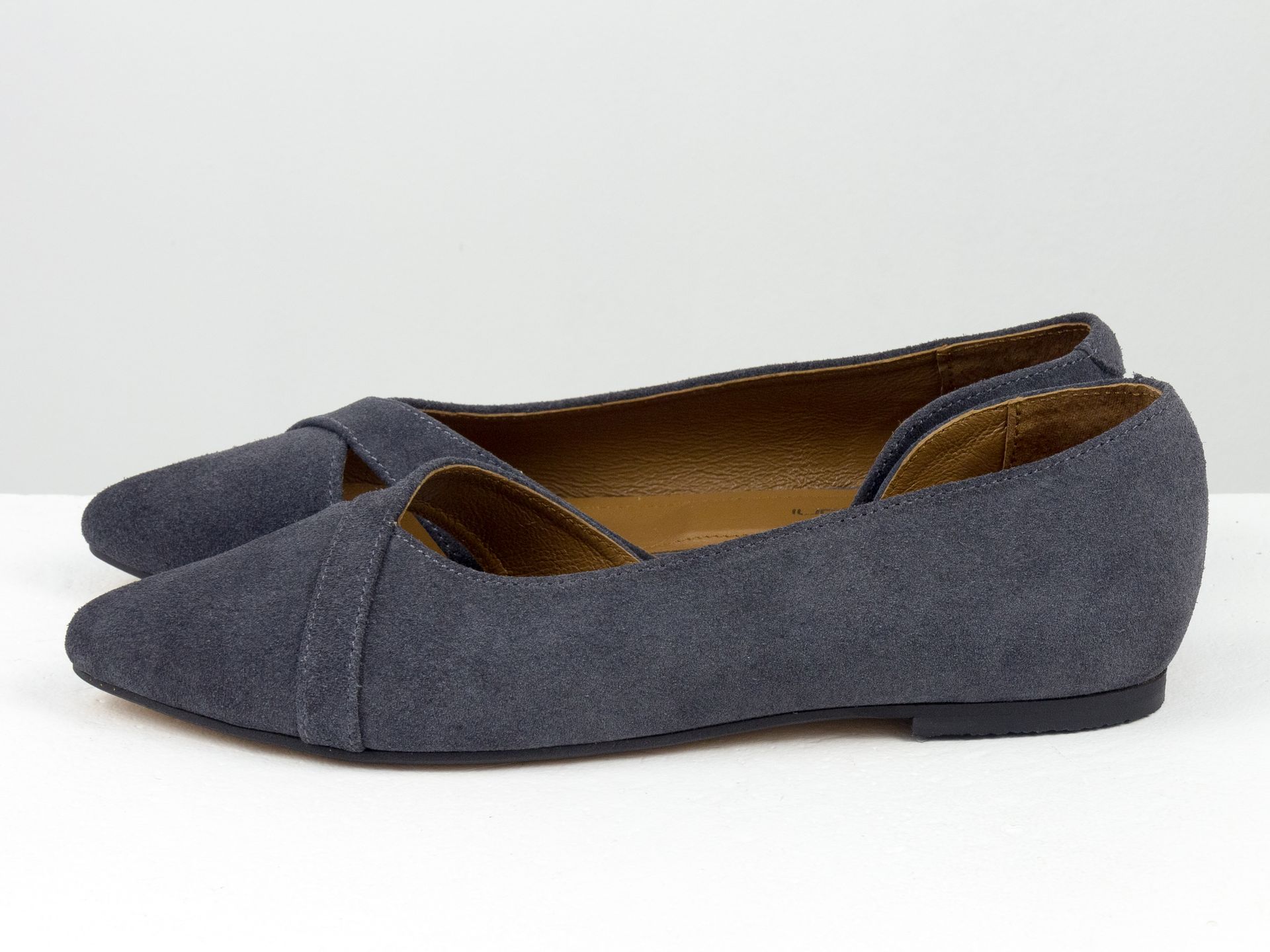 Женские туфли на низком ходу из натуральной замши серого цвета Gino Figini