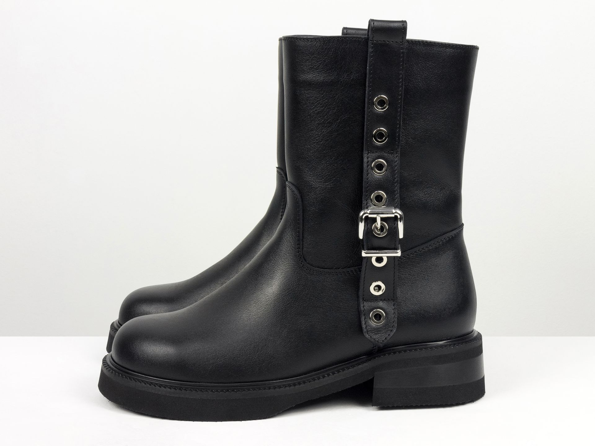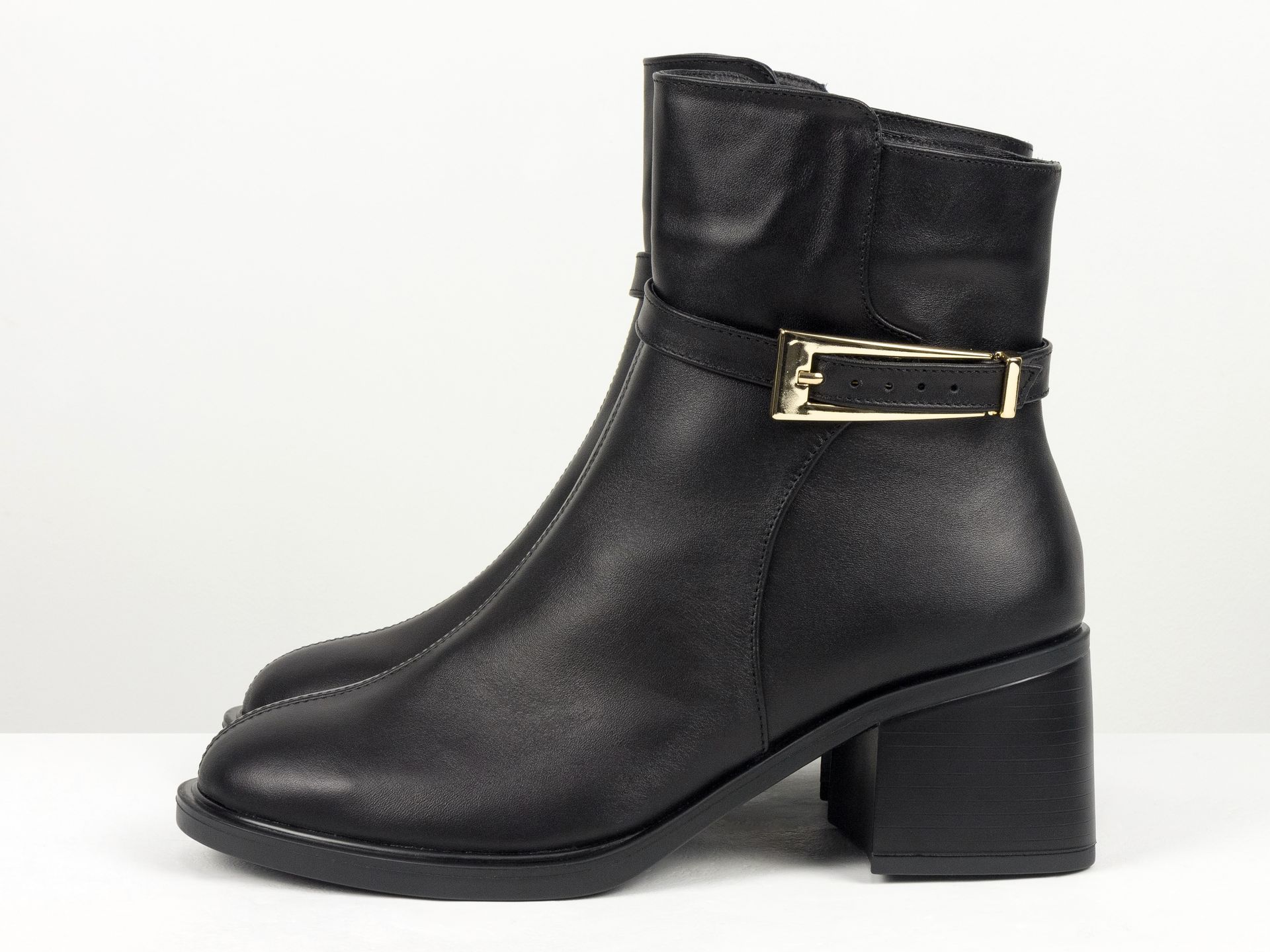 Дизайнерские ботильоны черного цвета из натуральной кожи на невысоком квадратном каблуке Gino Figini
