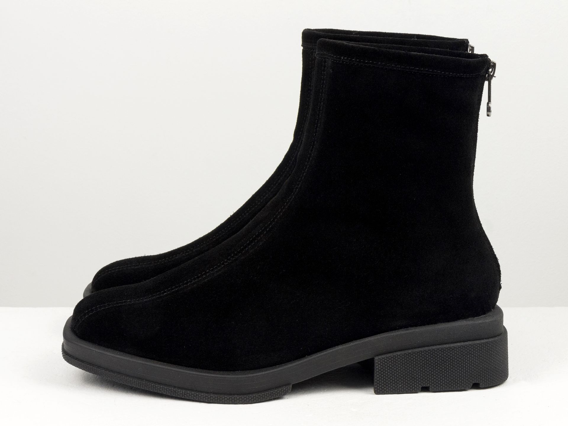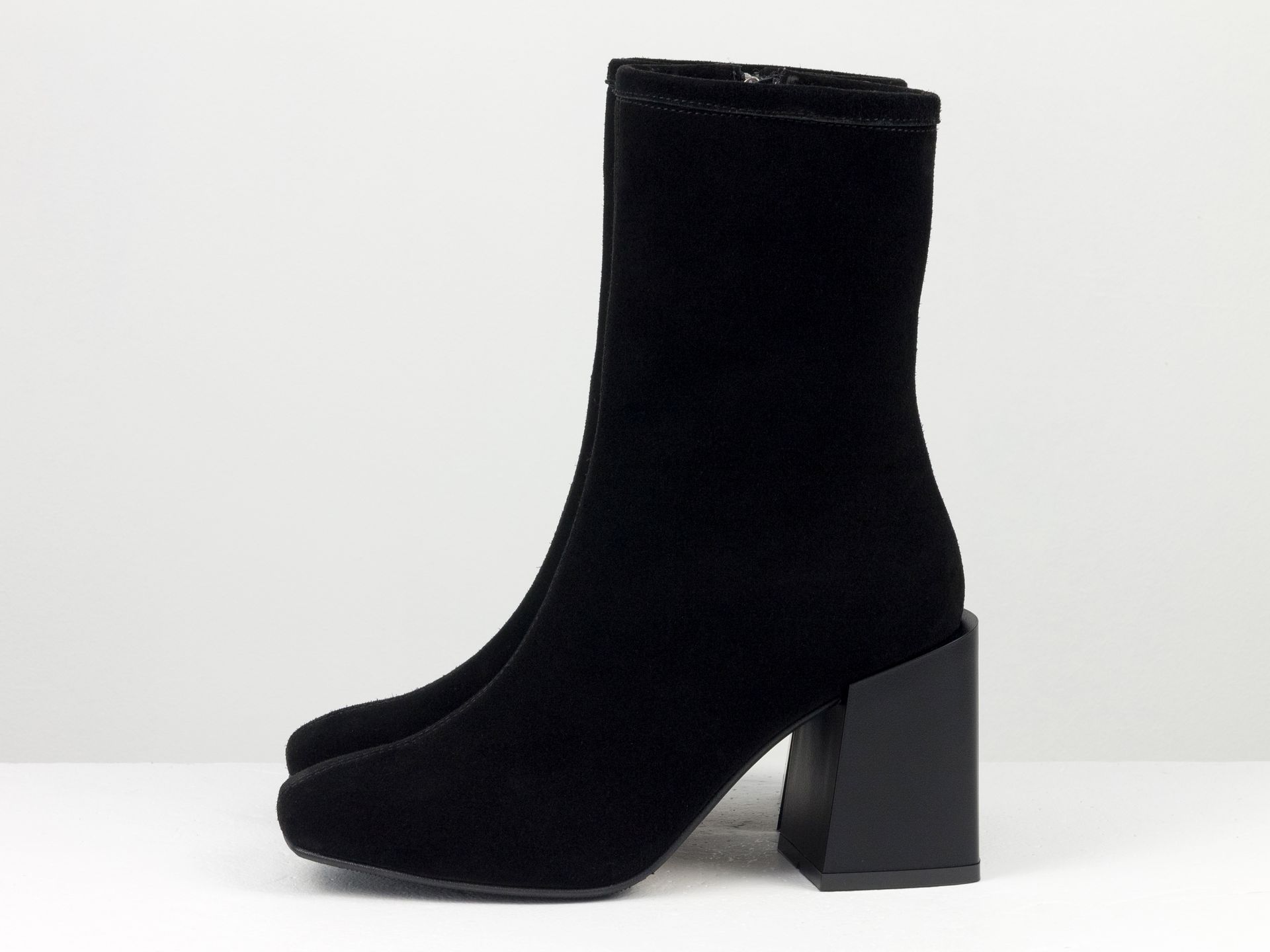 Дизайнерские базовые ботильоны черного цвета из натуральной замши на квадратном каблуке Gino Figini