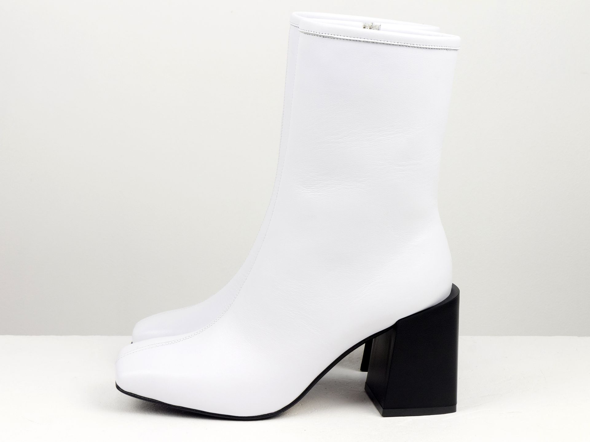 Дизайнерские ботильоны белого цвета из натуральной кожи на невысоком квадратном каблуке Gino Figini