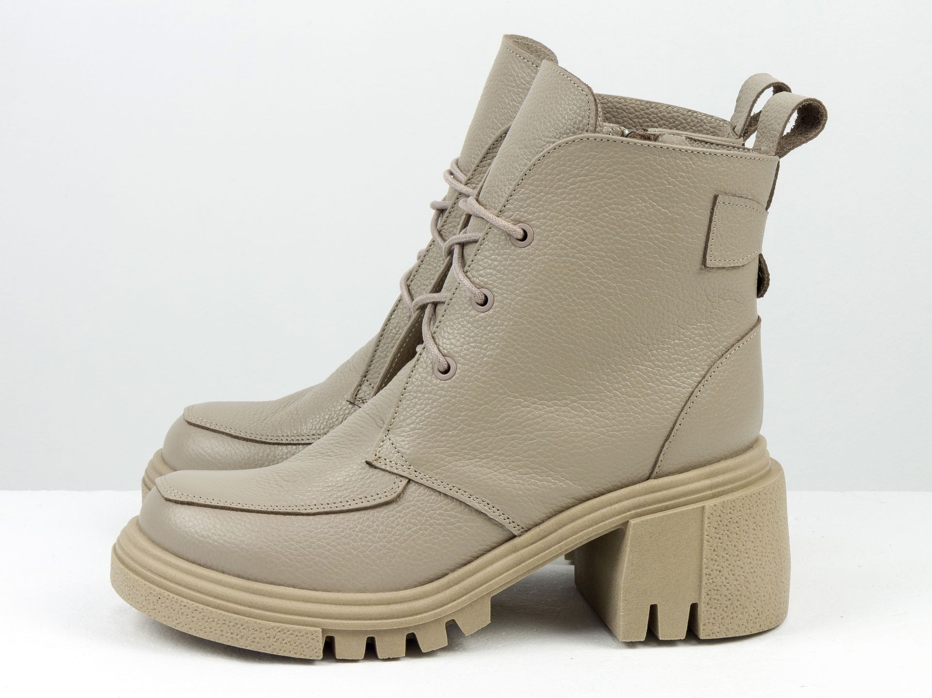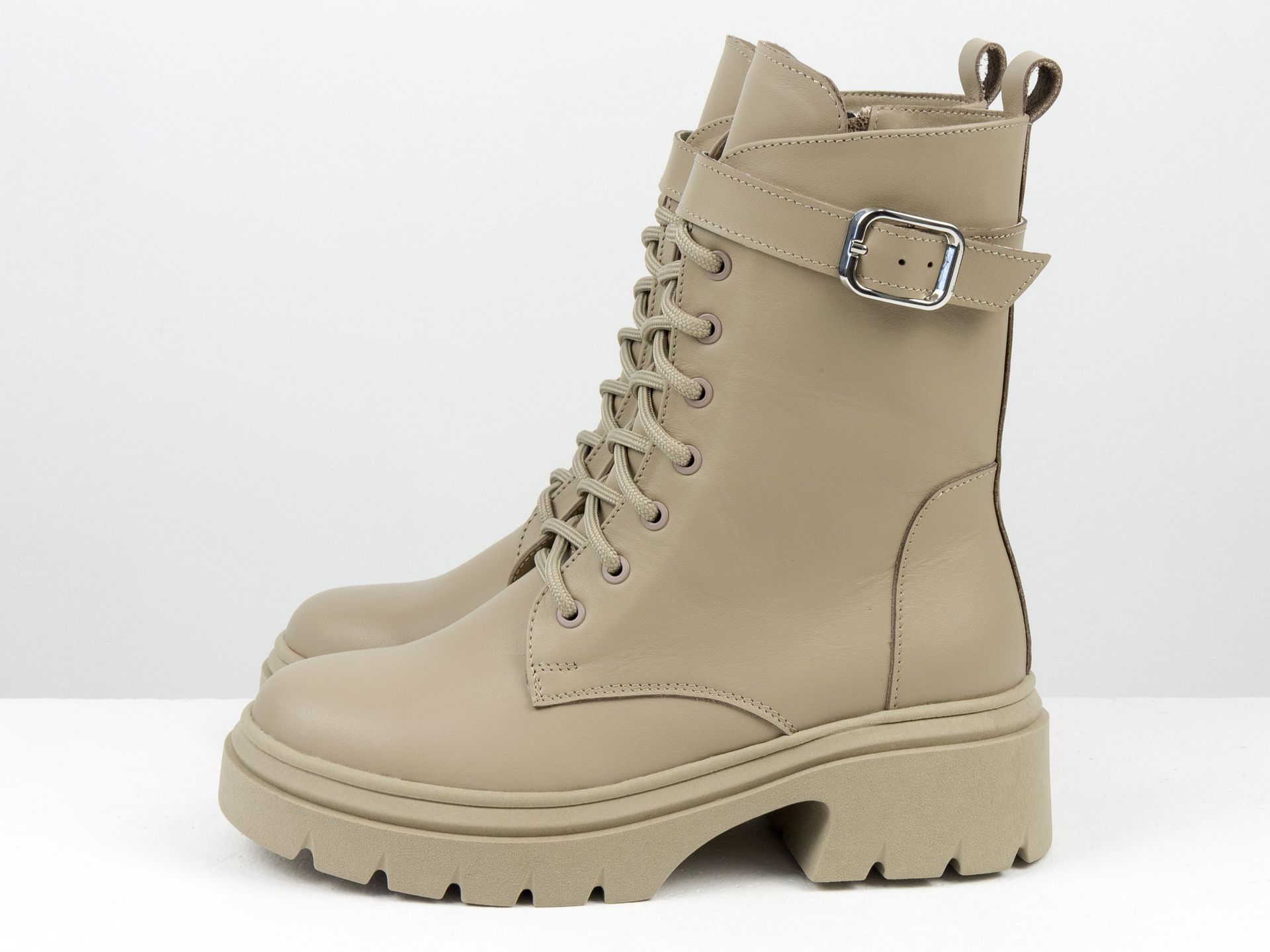 Женские высокие ботинки бежевого цвета из натуральной кожи на шнуровке Gino Figini
