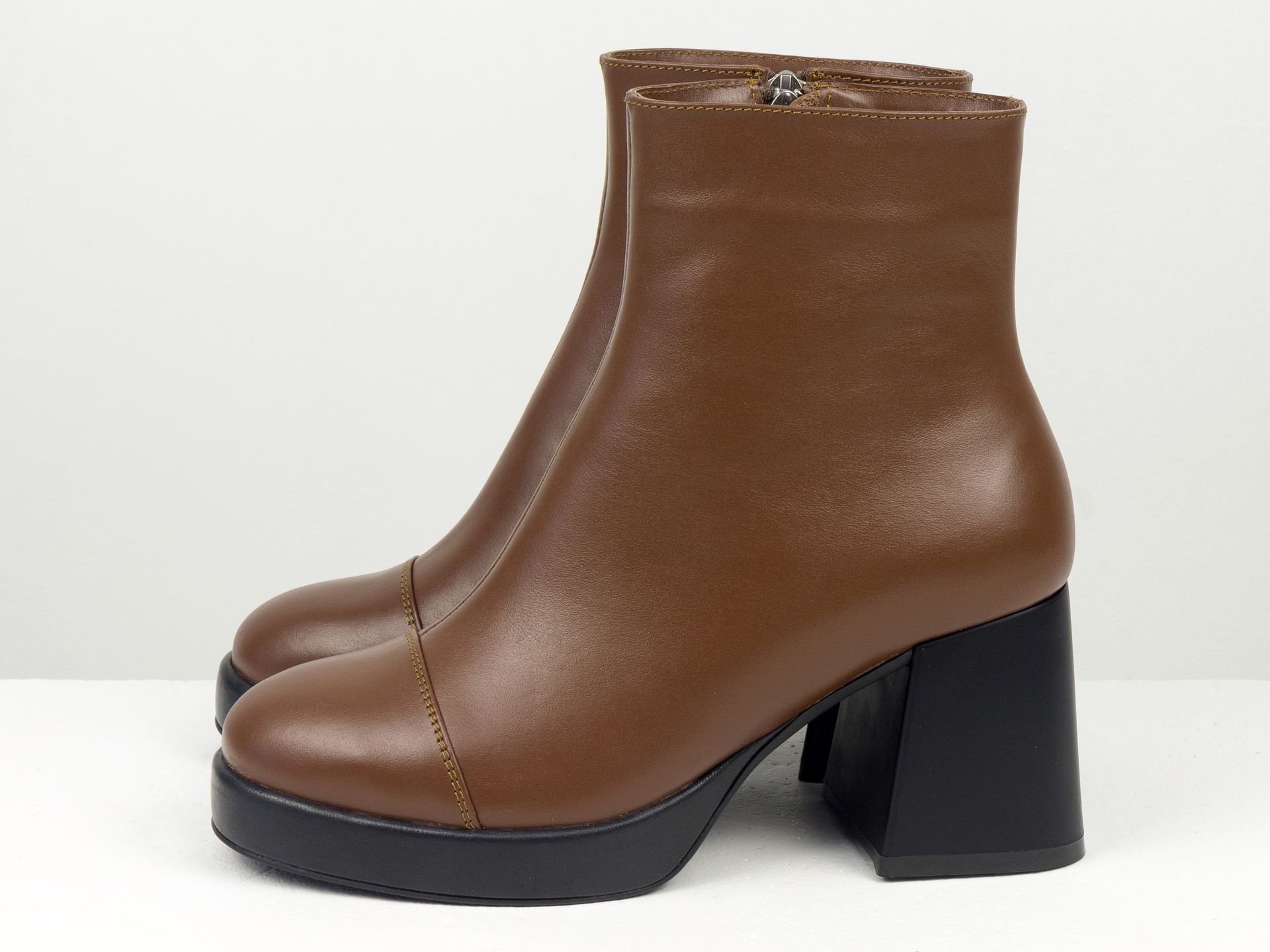 Женские карамельные ботинки из натуральной кожи с обтяжным каблуком Gino Figini