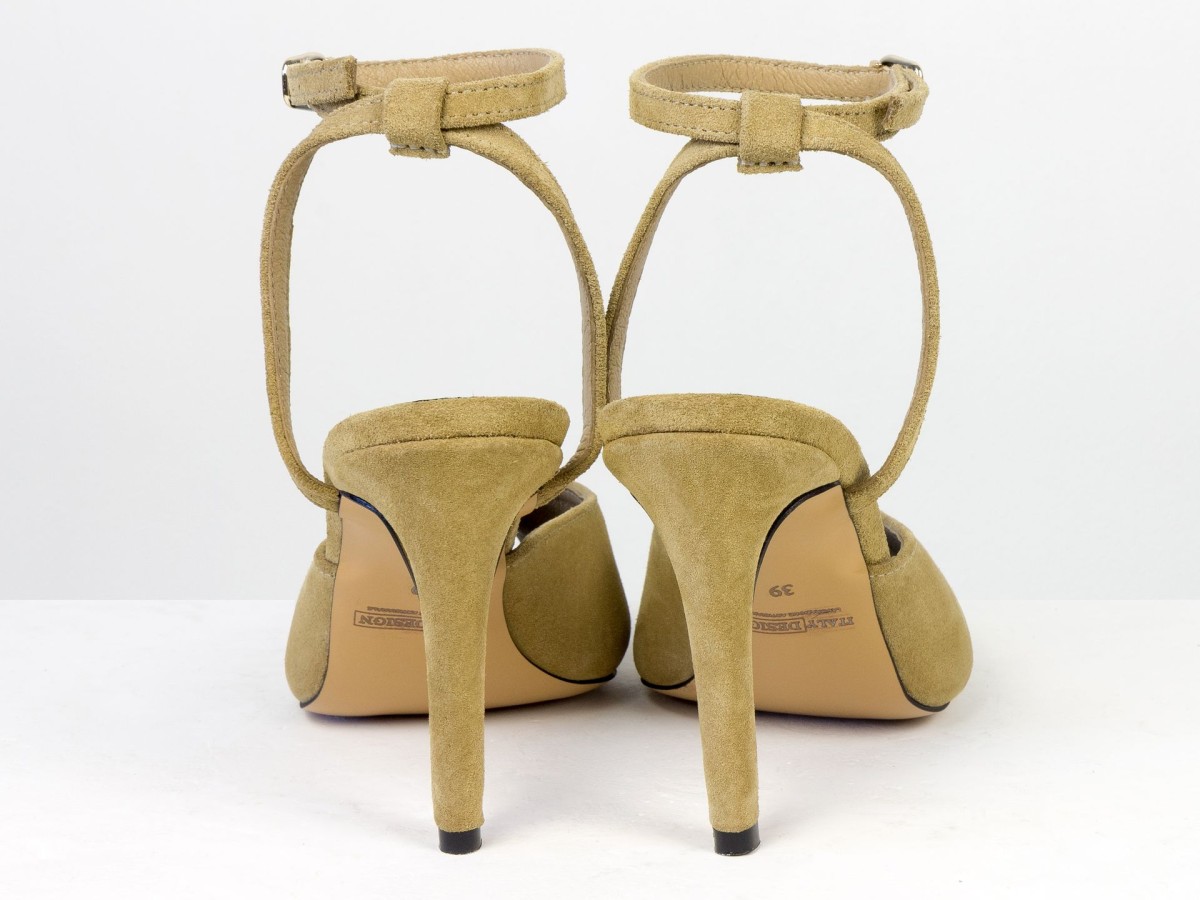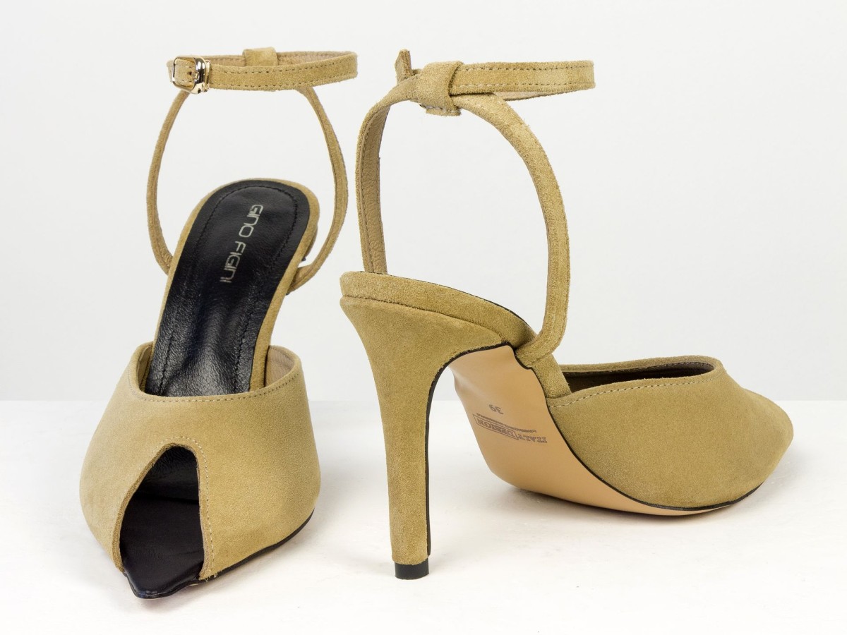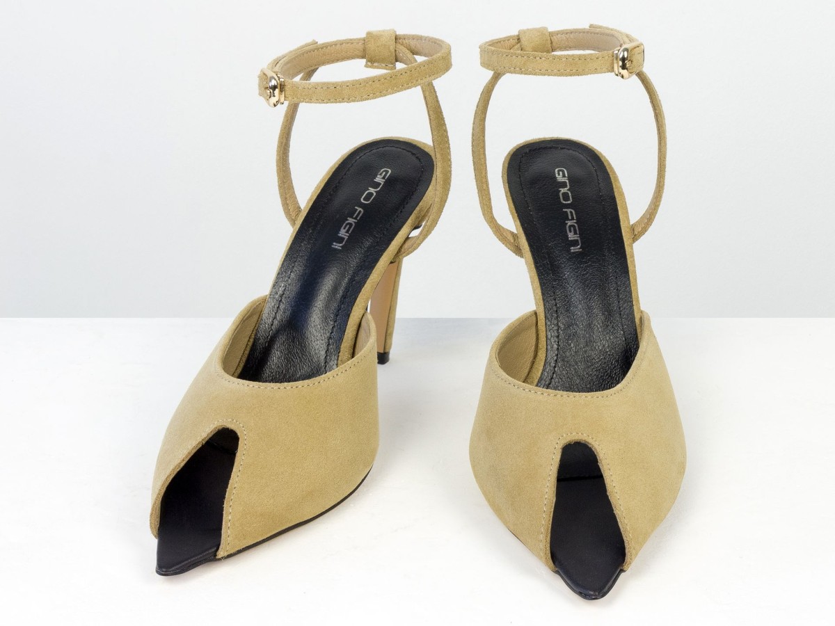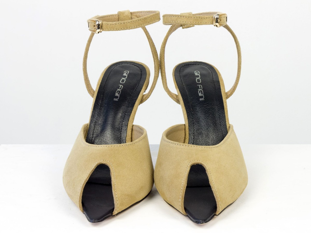 Изящные босоножки, подчеркивающие легкость и женственность образа. Модель выполнена из натуральной замши нежного песочного оттенка — цвета, который выглядит дорого и легко сочетается с летним гардеробом. Аккуратный вырез спереди добавляет деликатный акцент, а тонкий ремешок на лодыжке подчеркивает ногу и обеспечивает надежную фиксацию. Каблук элегантной высоты визуально удлиняет силуэт и делает походку более изящной.