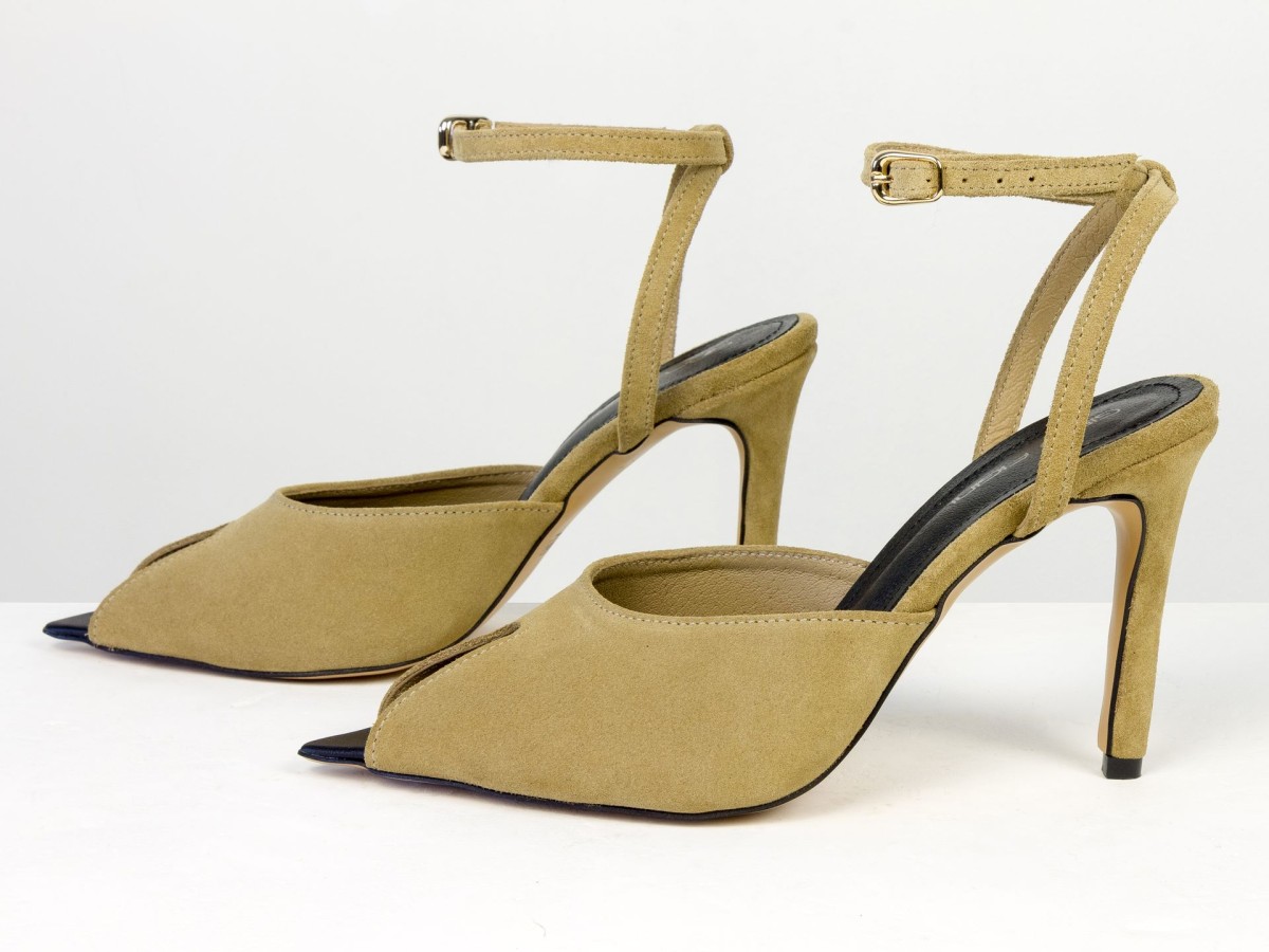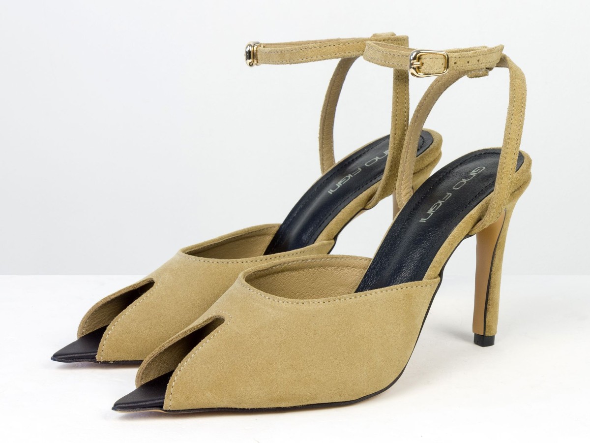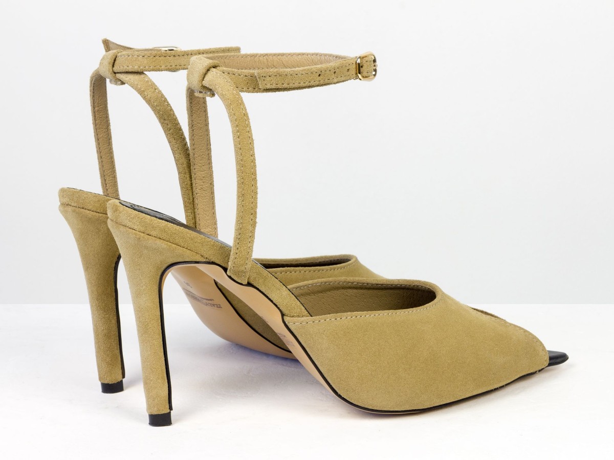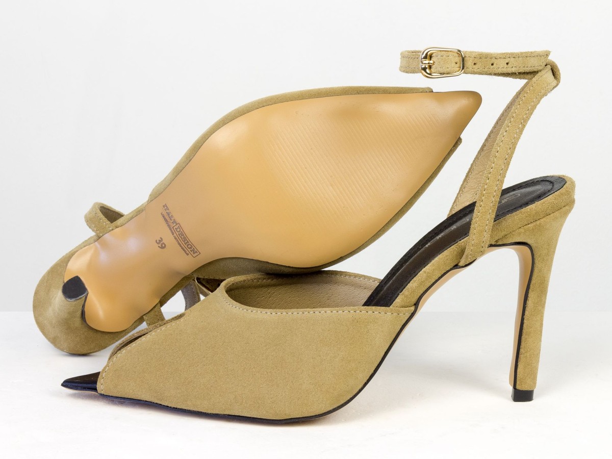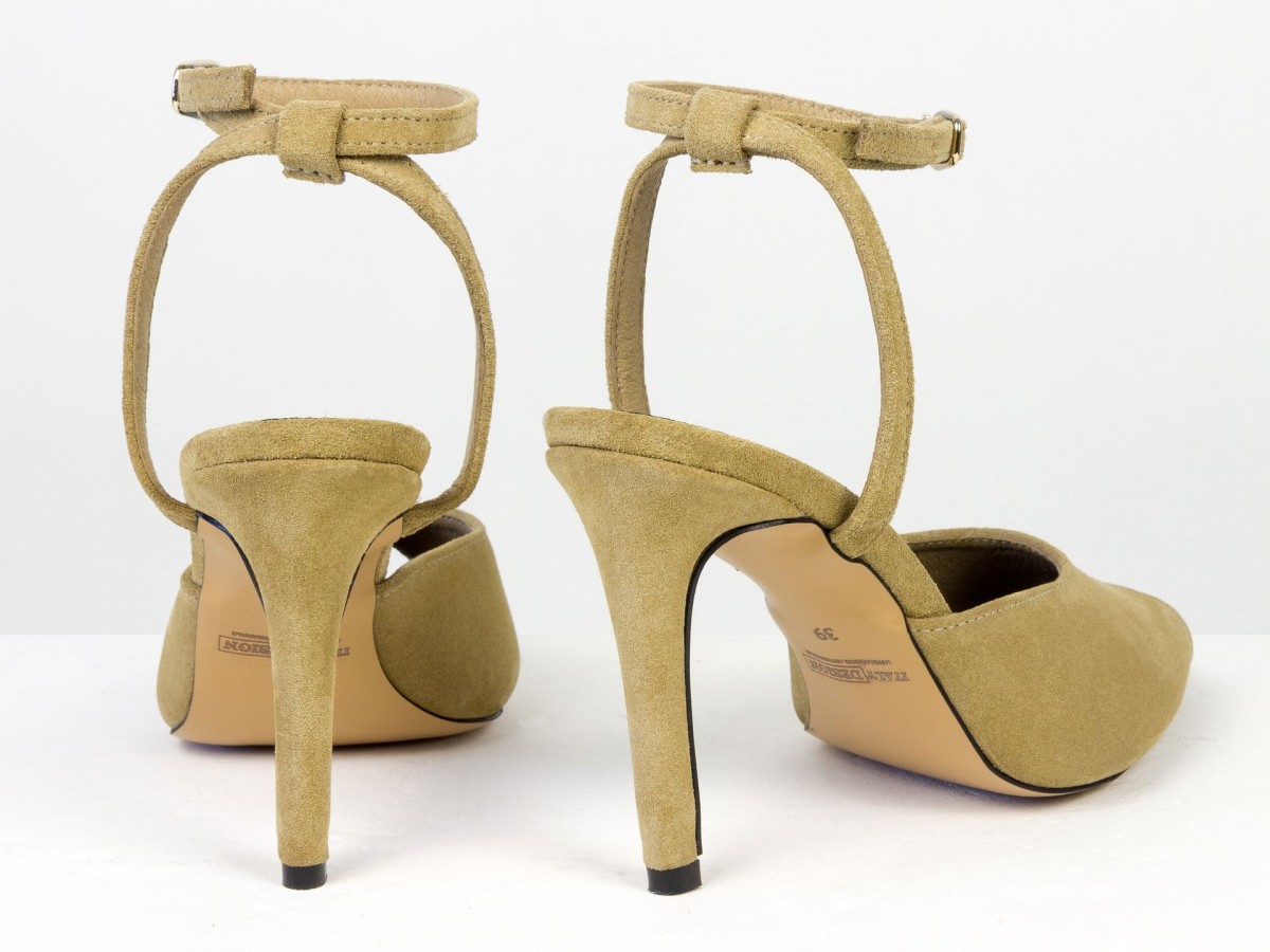 Изящные босоножки, подчеркивающие легкость и женственность образа. Модель выполнена из натуральной замши нежного песочного оттенка — цвета, который выглядит дорого и легко сочетается с летним гардеробом. Аккуратный вырез спереди добавляет деликатный акцент, а тонкий ремешок на лодыжке подчеркивает ногу и обеспечивает надежную фиксацию. Каблук элегантной высоты визуально удлиняет силуэт и делает походку более изящной.
