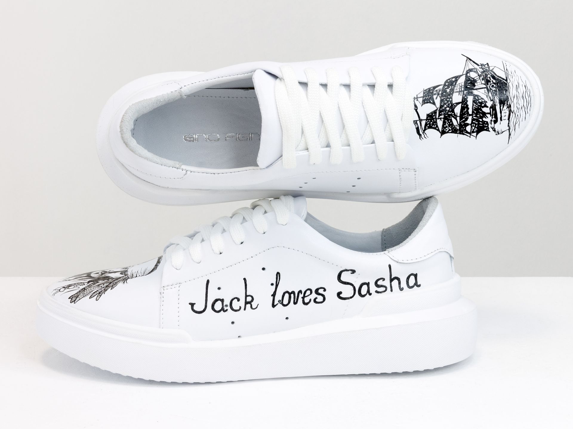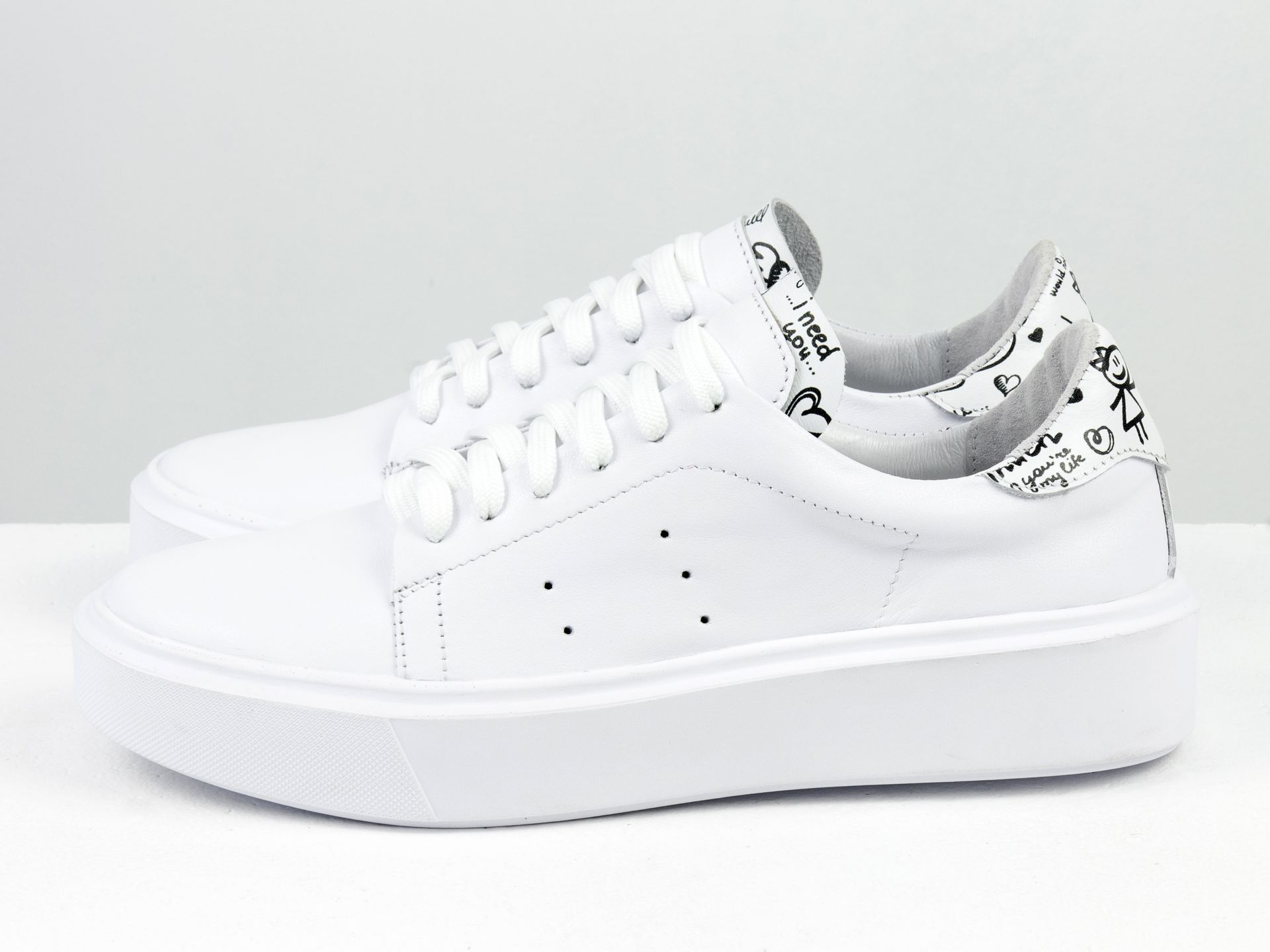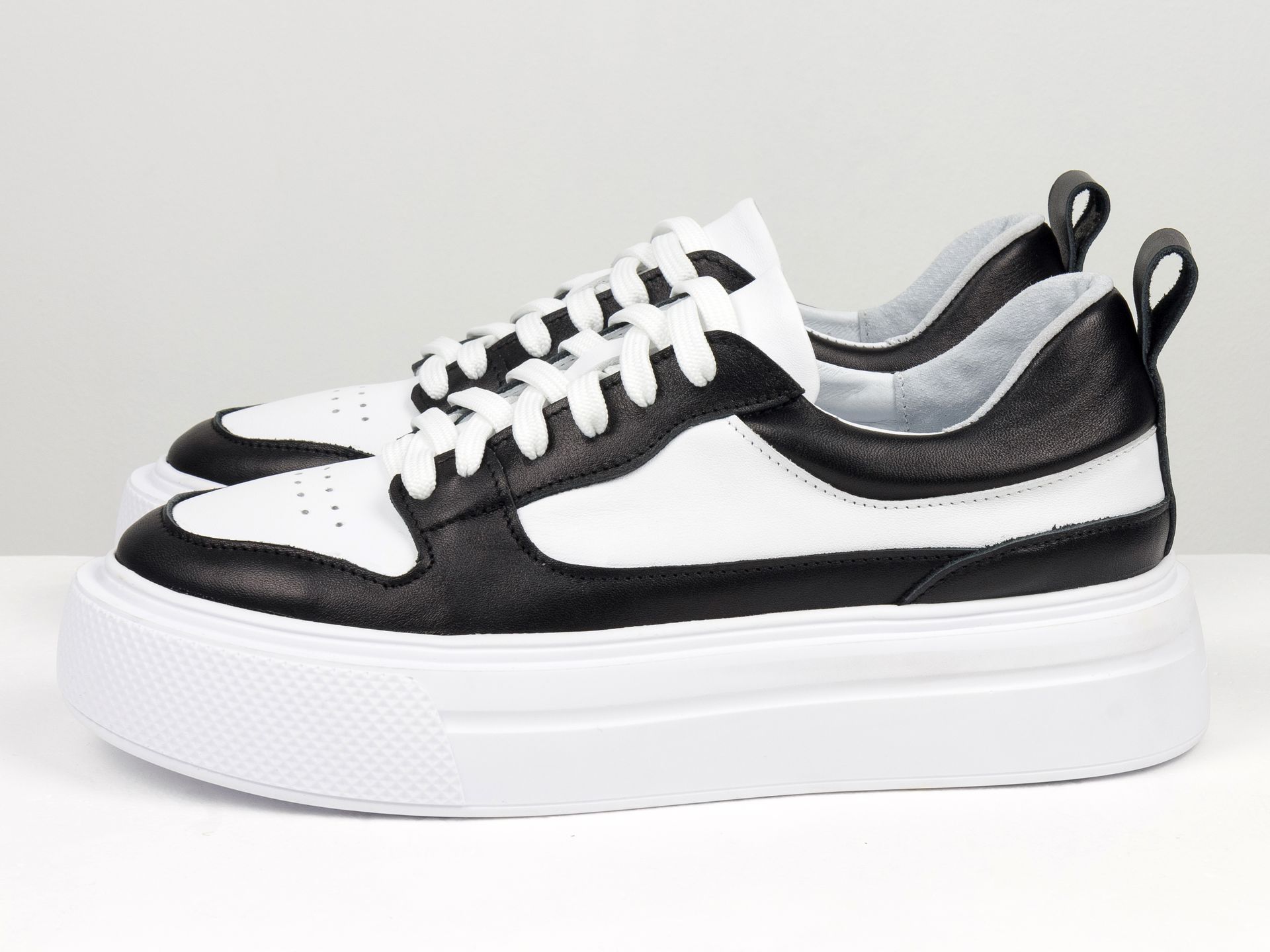 Женские кеды из натуральной кожи белого и черного цвета на утолщенной подошве Gino Figini