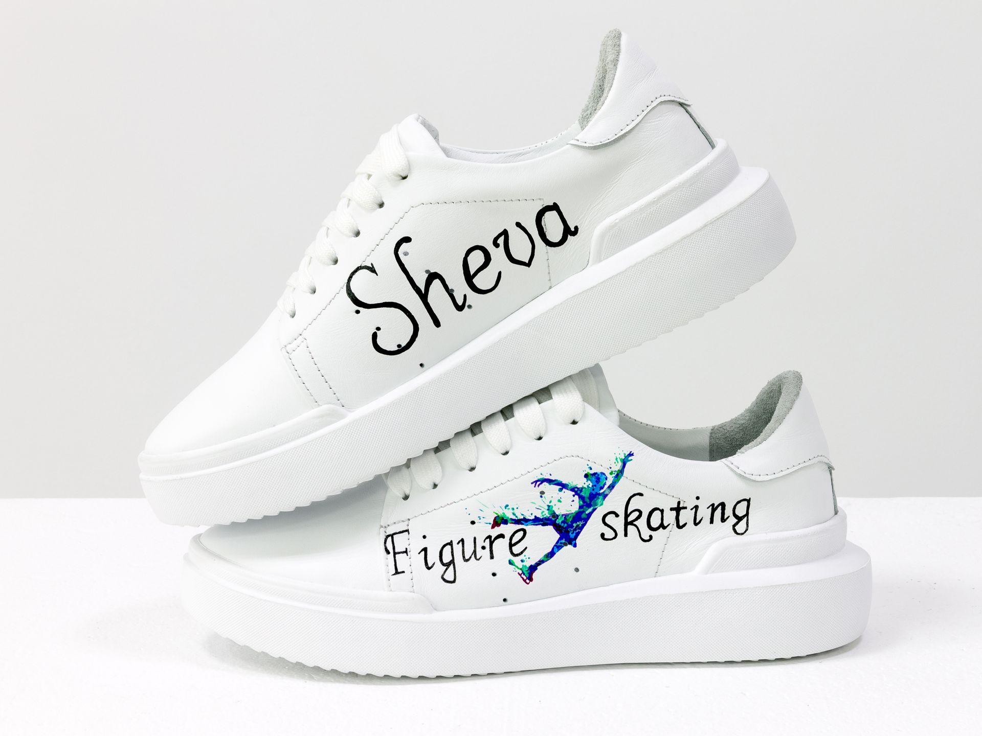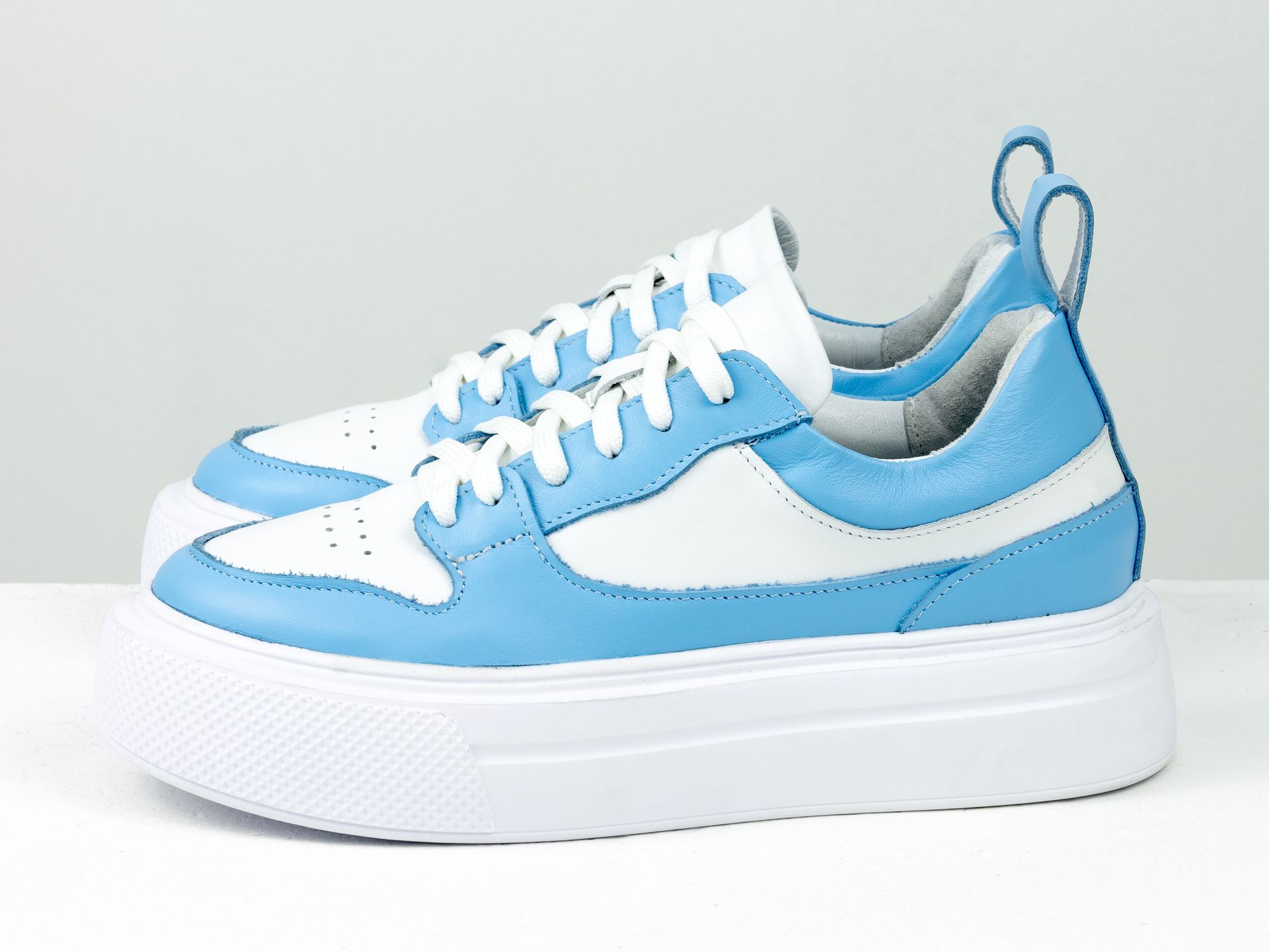 Женские кеды из натуральной кожи белого и голубого цвета на утолщенной подошве Gino Figini