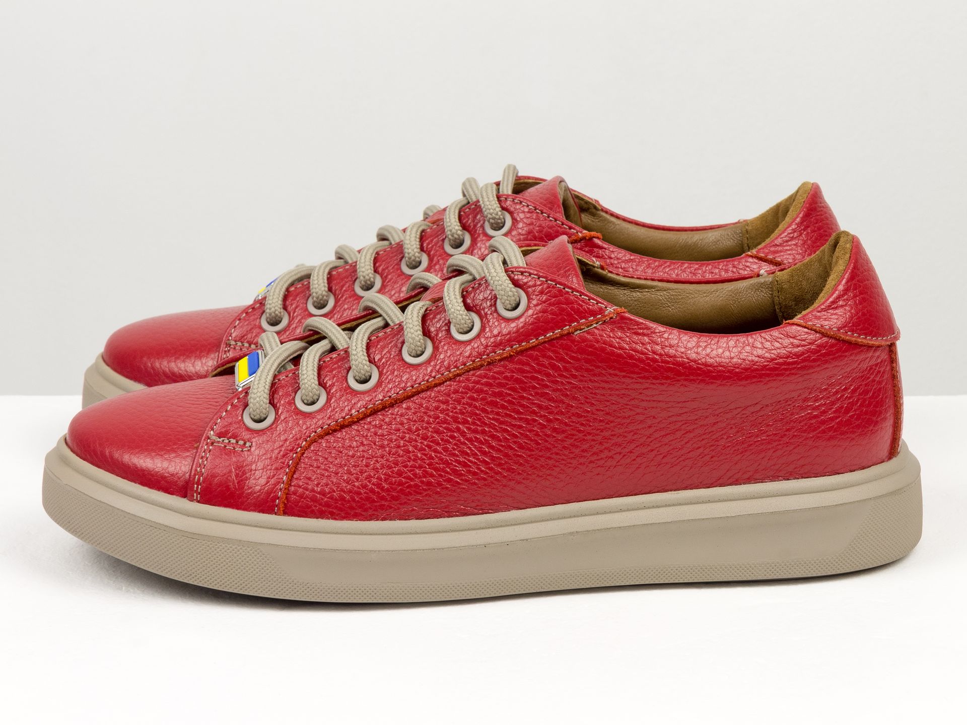 Женские кеды из натуральной кожи флотар красного цвета на облегченной подошве Gino Figini