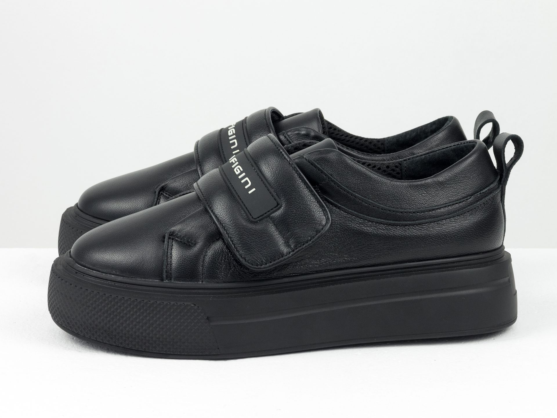 Женские кеды из натуральной мягкой кожи черного цвета с липучками на облегченной подошве Gino Figini