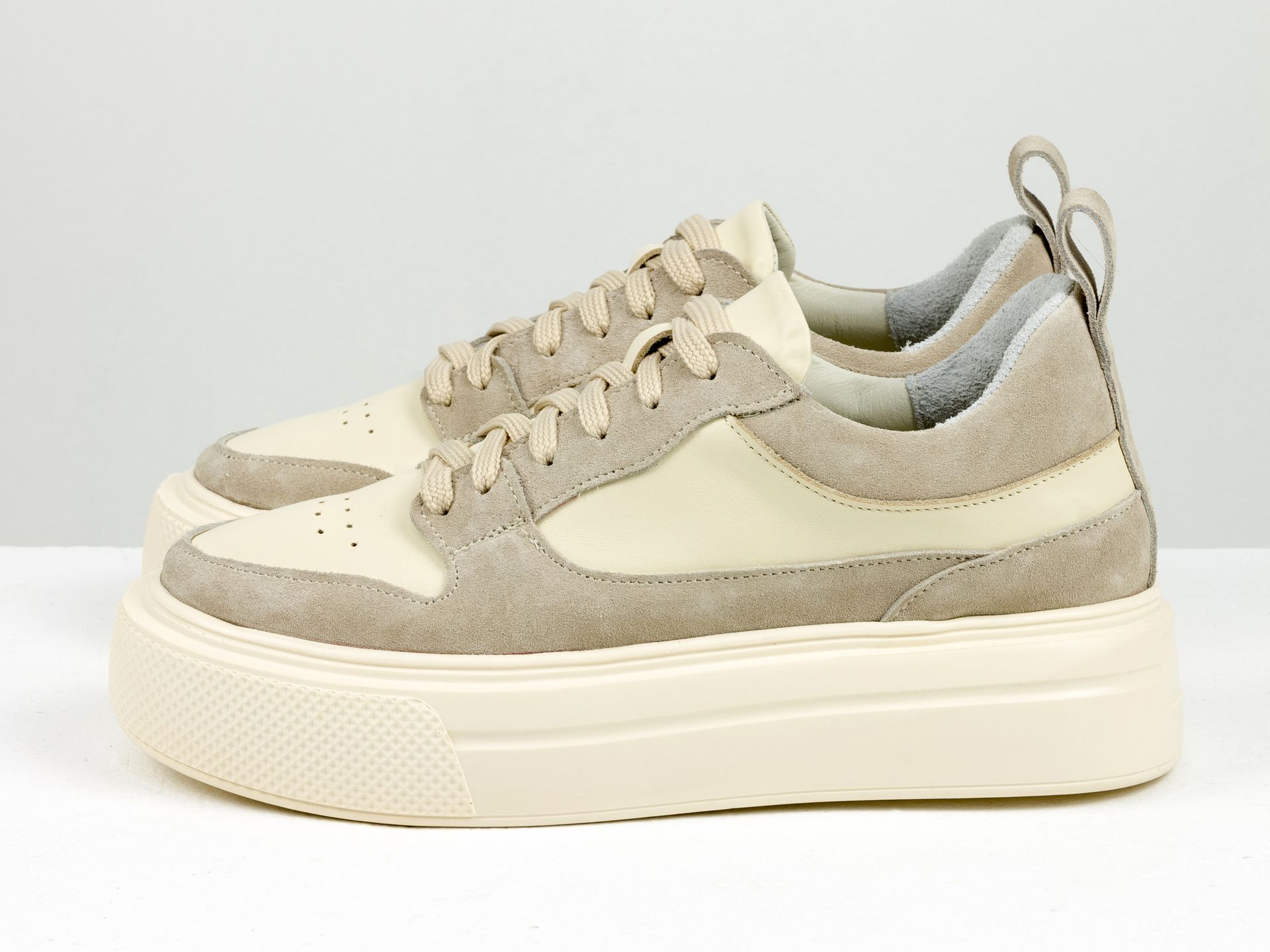 Женские кремовые кеды из натуральной кожи в сочетании бежевой замши на утолщенной подошве Gino Figini