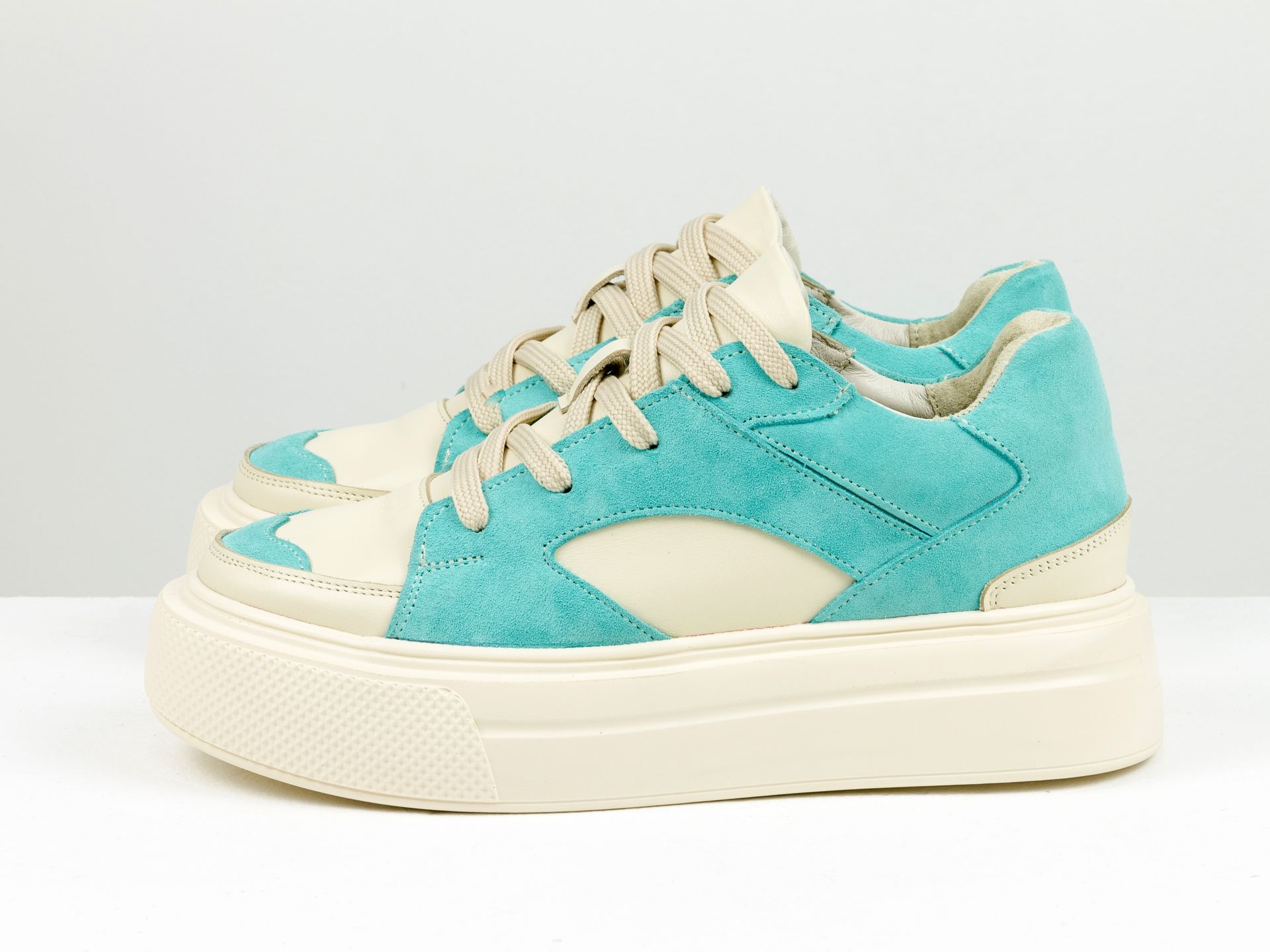 Женские молочные кеды из натуральной кожи в сочетании мятной замши на облегченной подошве Gino Figini
