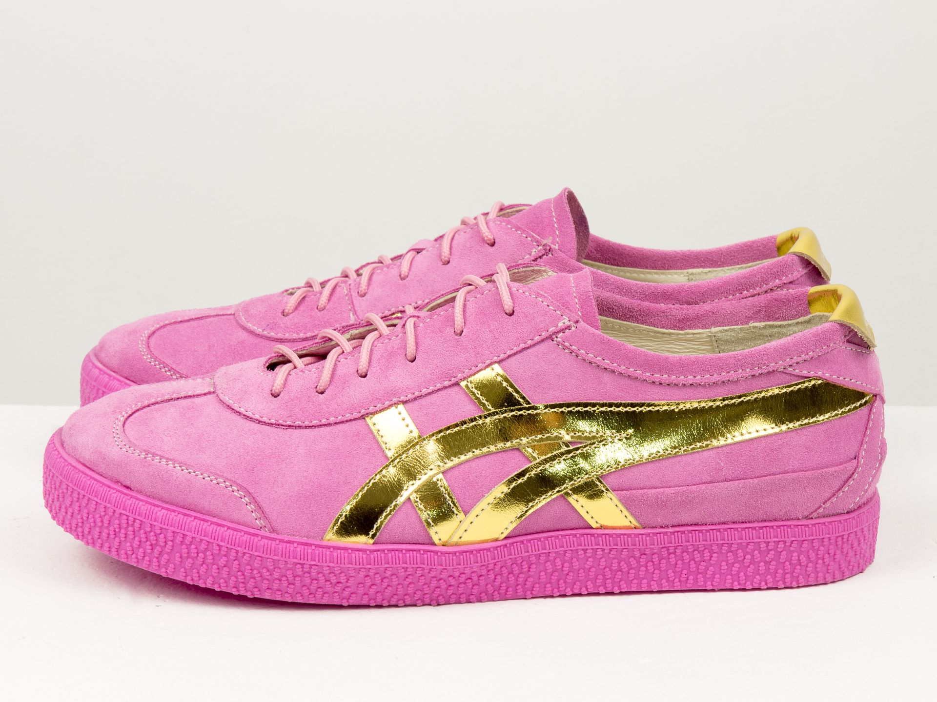 Женские розовые кеды из натуральной замши "барби" в сочетании золотой кожи на розовой подошве Gino Figini