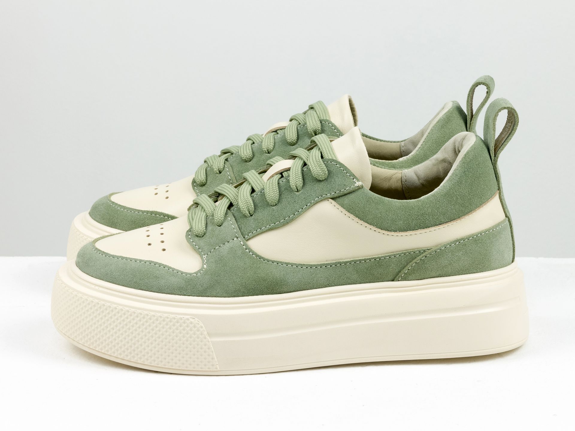 Женские молочные кеды в сочетании оливковой замши на утолщенной подошве Gino Figini