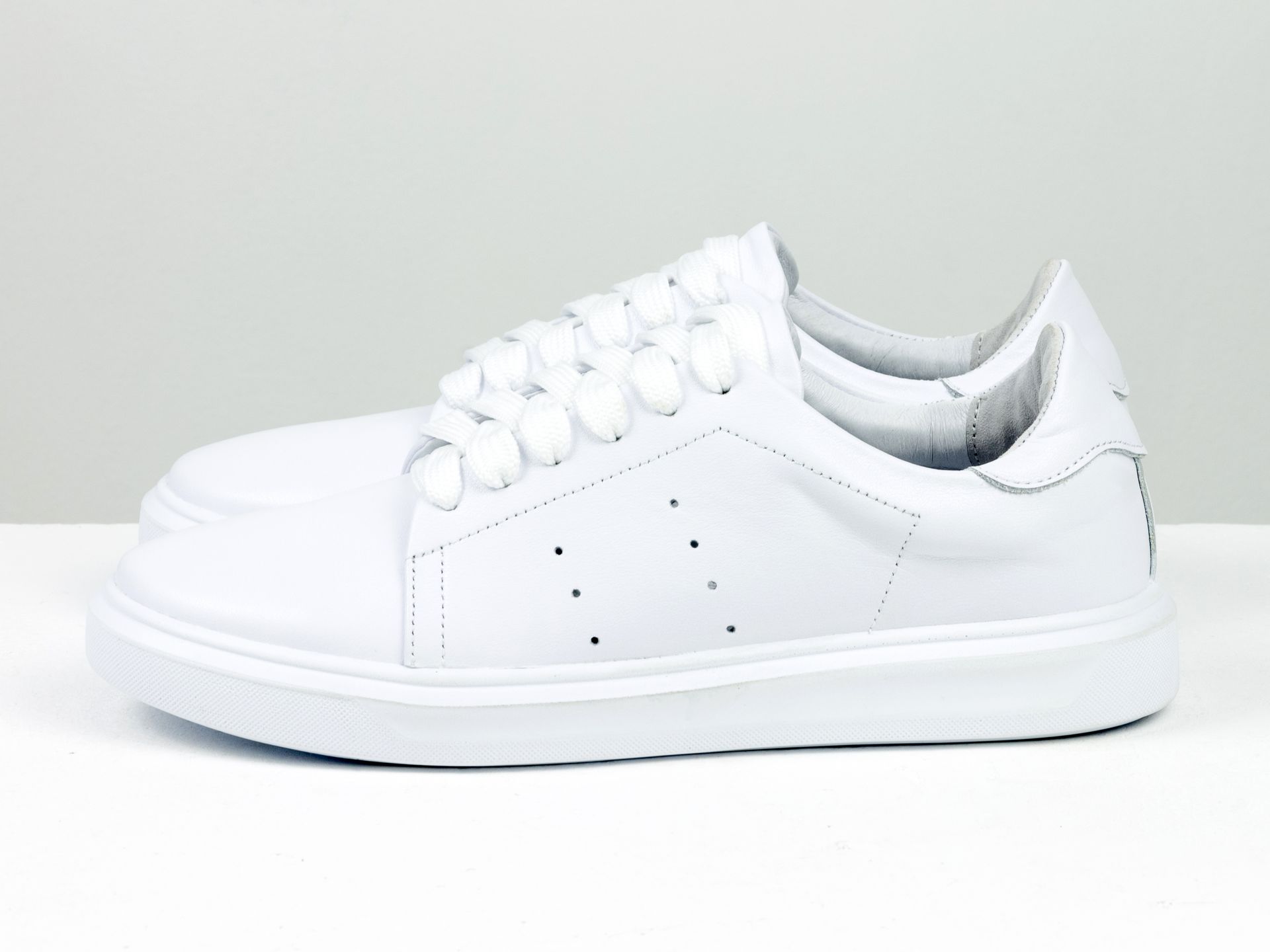 Женские белые кеды из натуральной кожи на утолщенной прорезиненной подошве Gino Figini