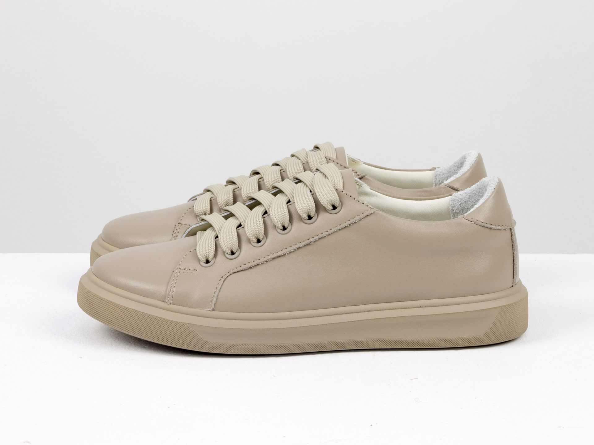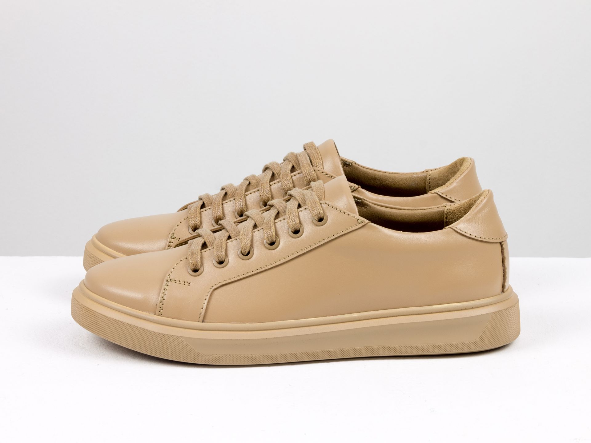 Женские кеды из натуральной кожи цвета капучино на облегченной подошве Gino Figini