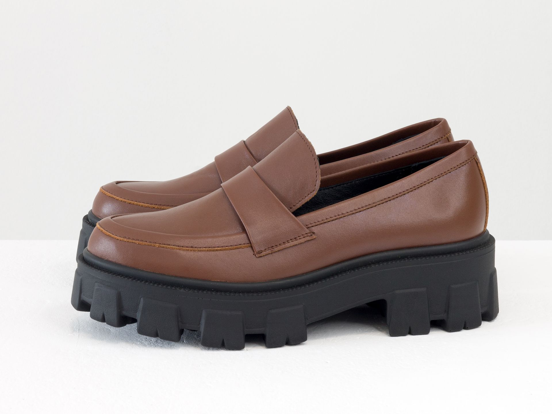 Женские туфли на тракторной подошве из натуральной кожи рыже-коричневого цвета Gino Figini