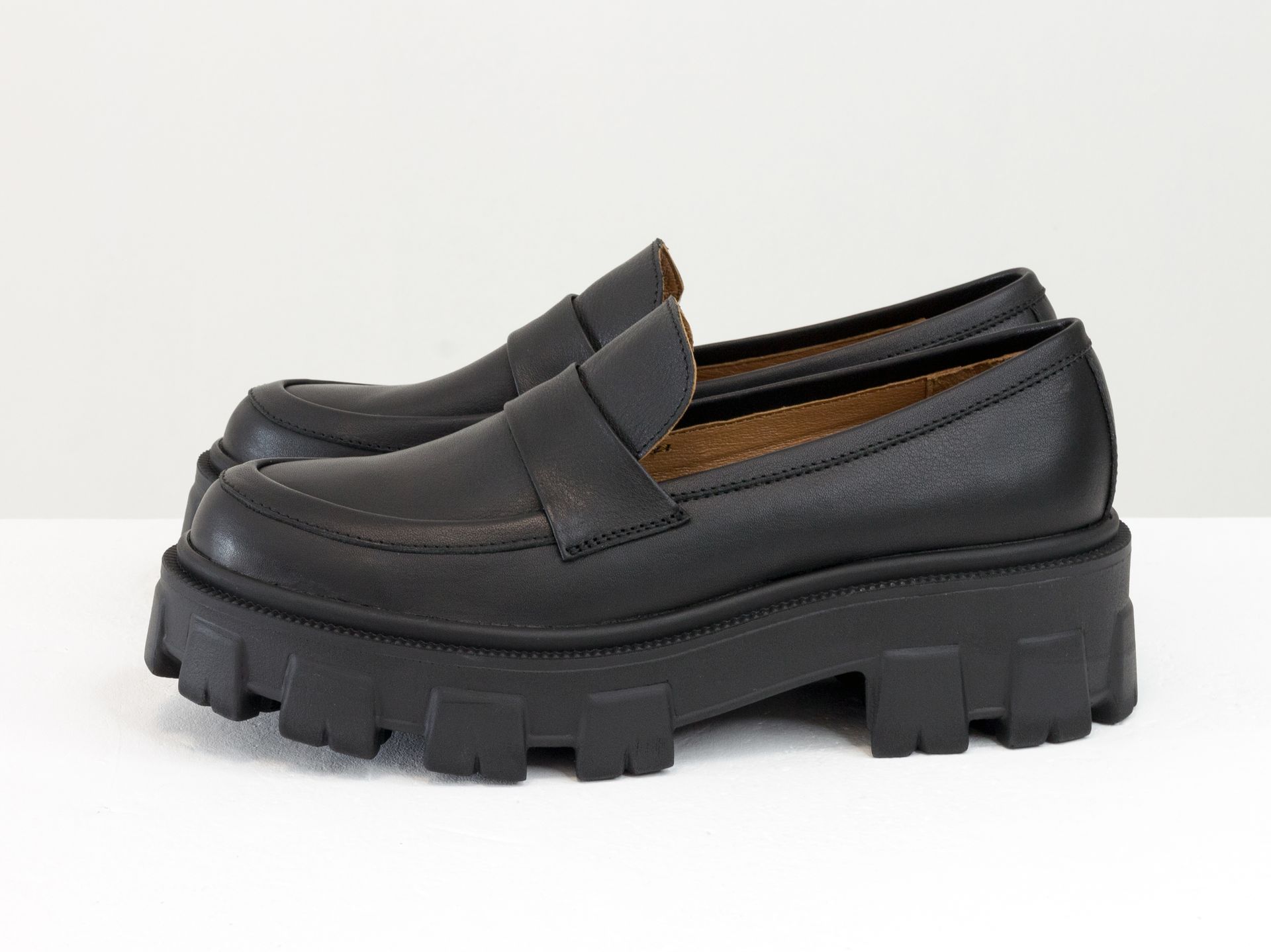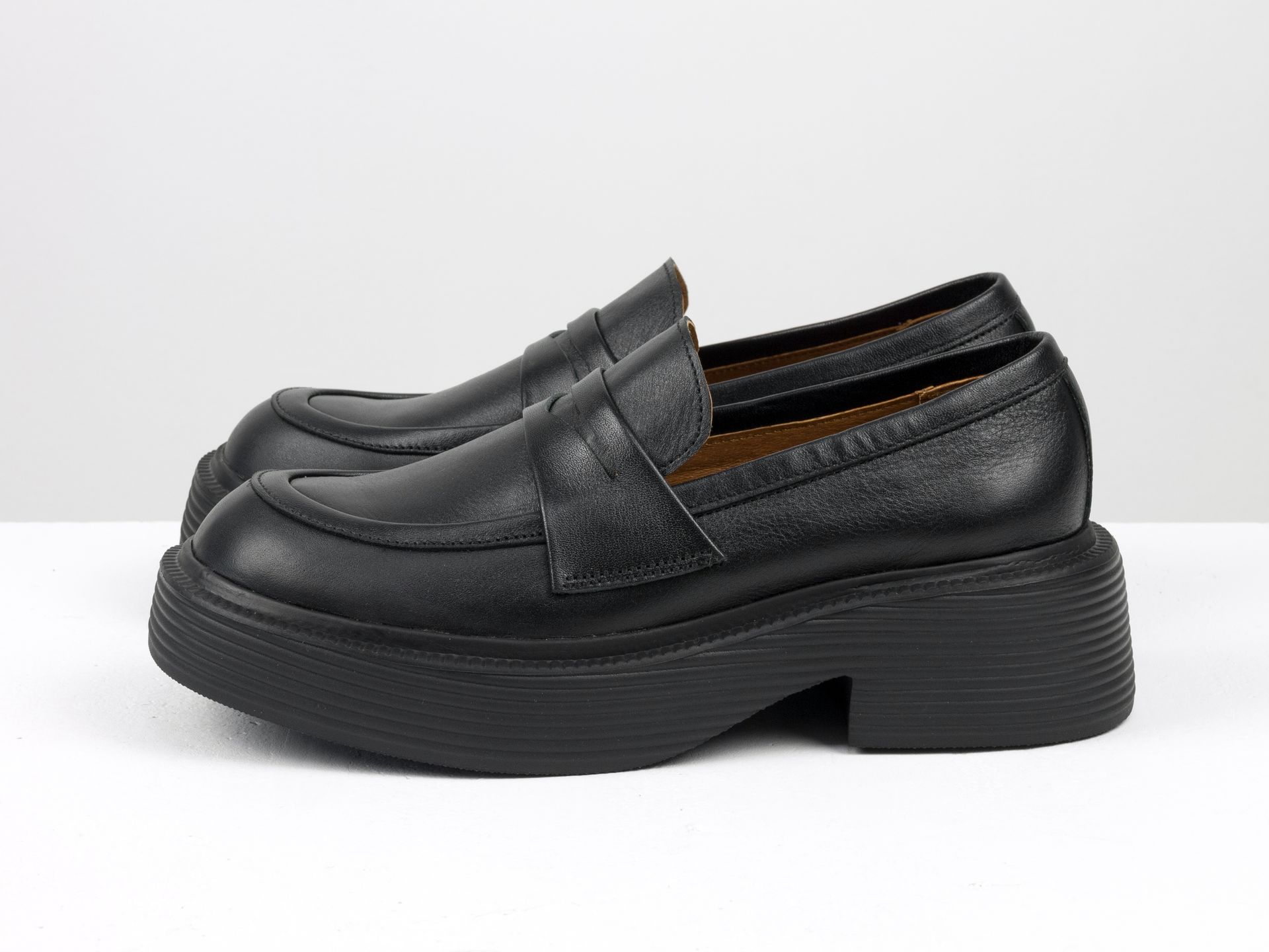 Женские туфли-лоферы из натуральной кожи черного цвета на утолщенной подошве Gino Figini