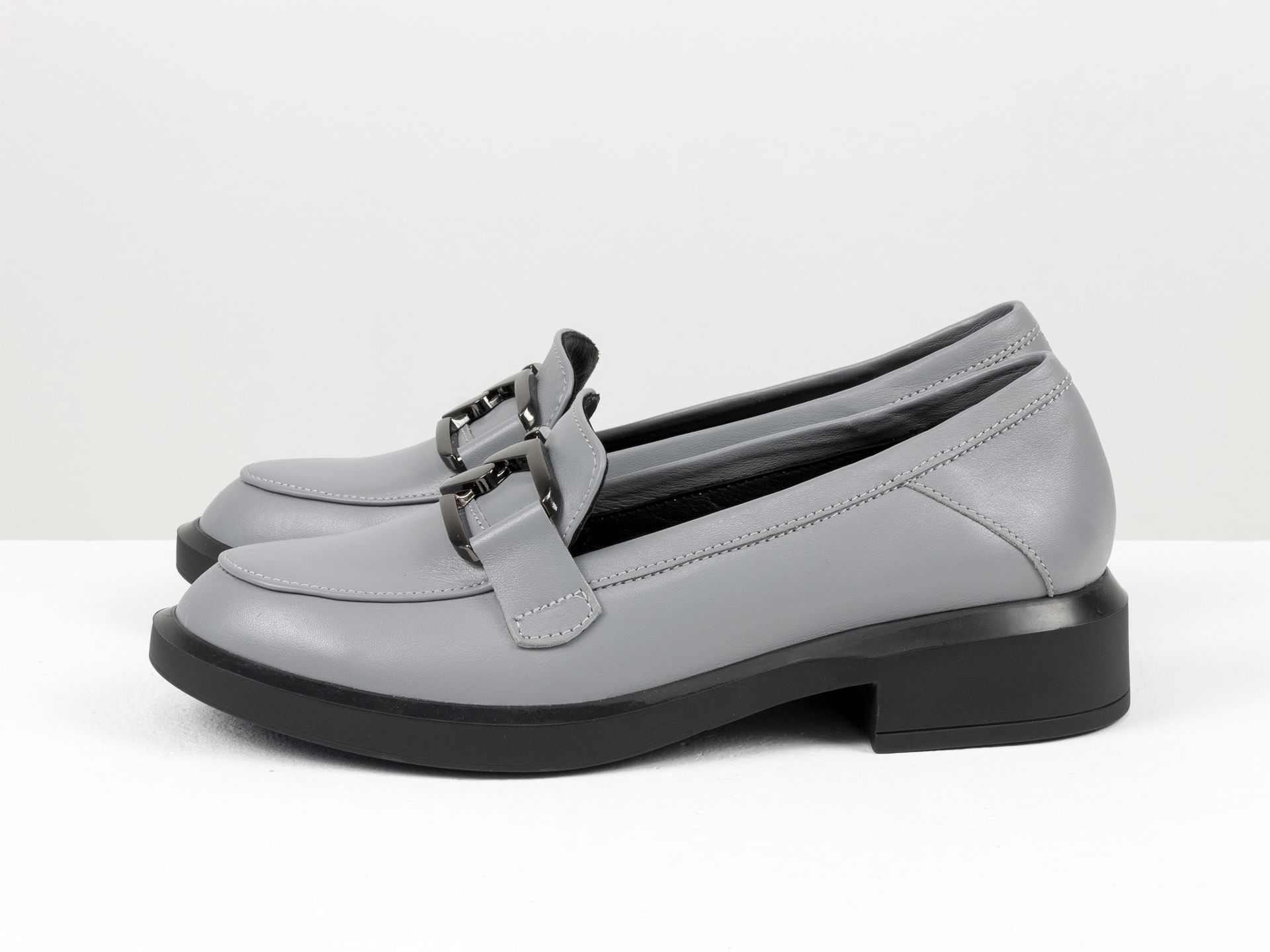 Женские туфли- лоферы из натуральной кожи серого цвета с цепочкой Gino Figini