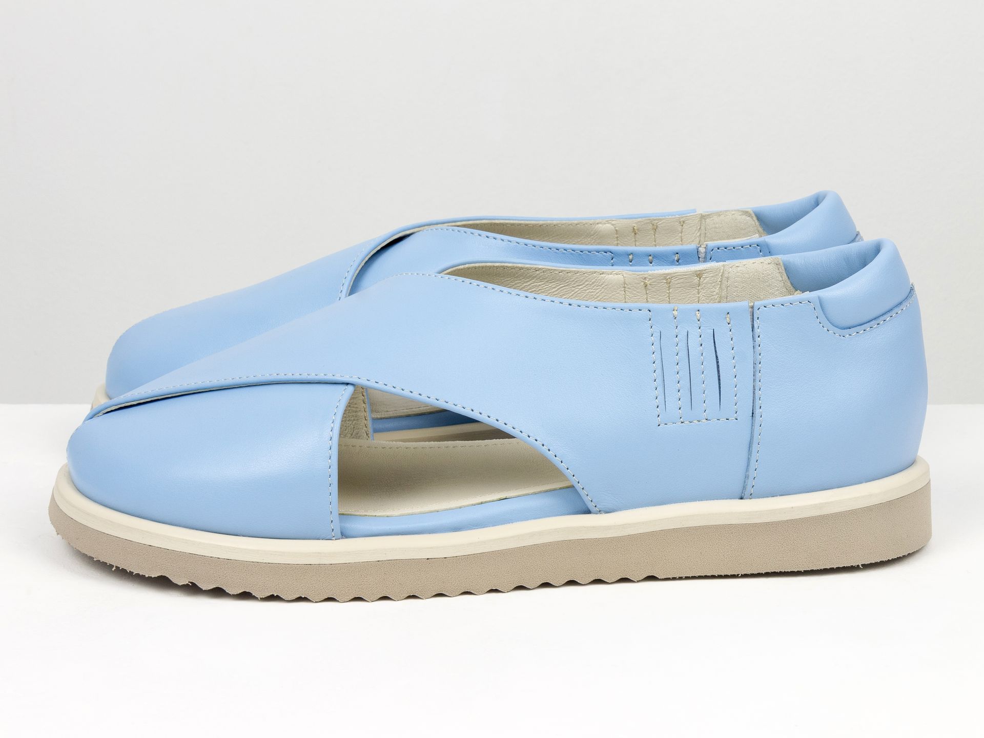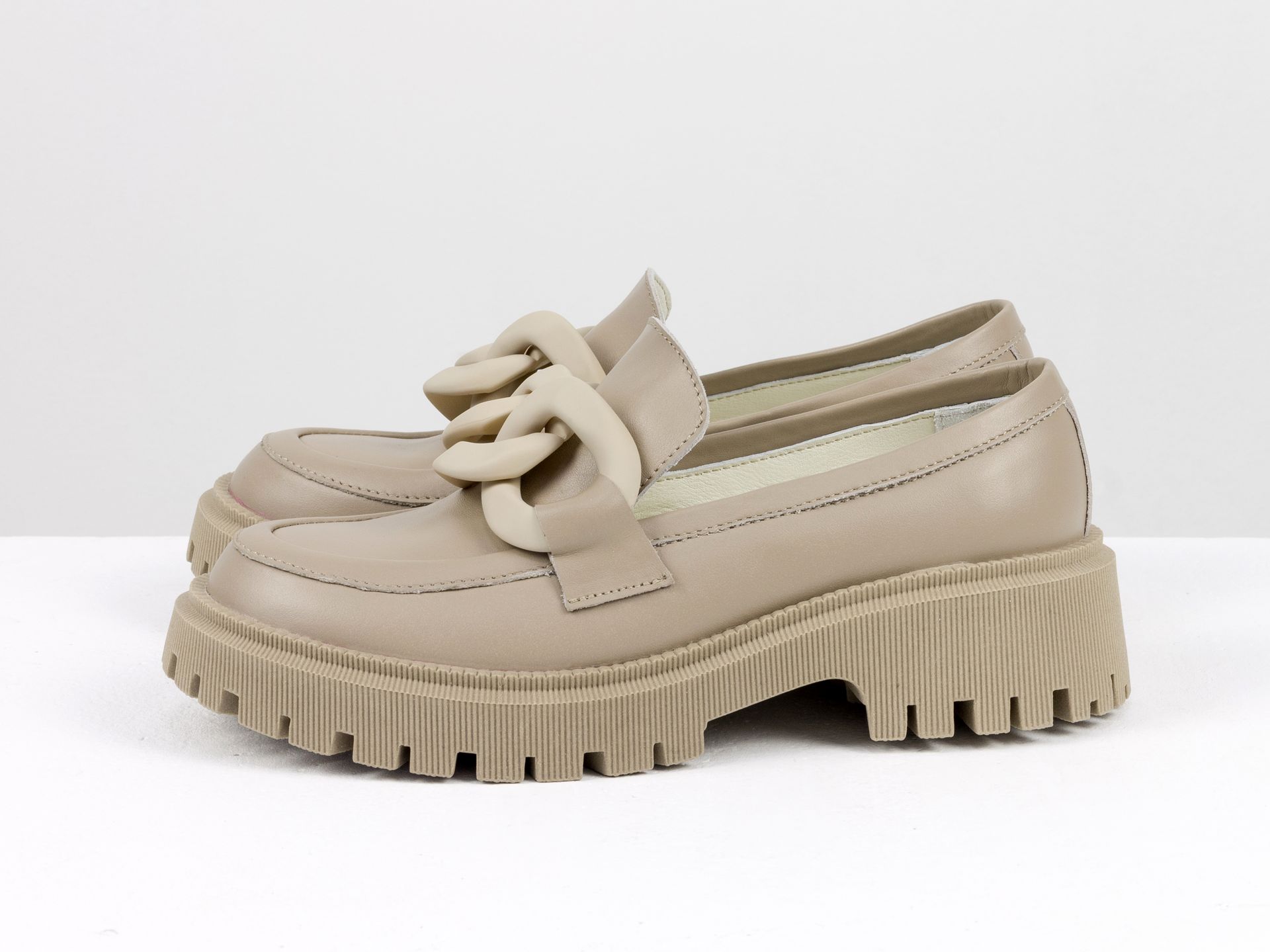 Женские туфли на тракторной подошве из натуральной кожи бежевого цвета с цепочкой Gino Figini