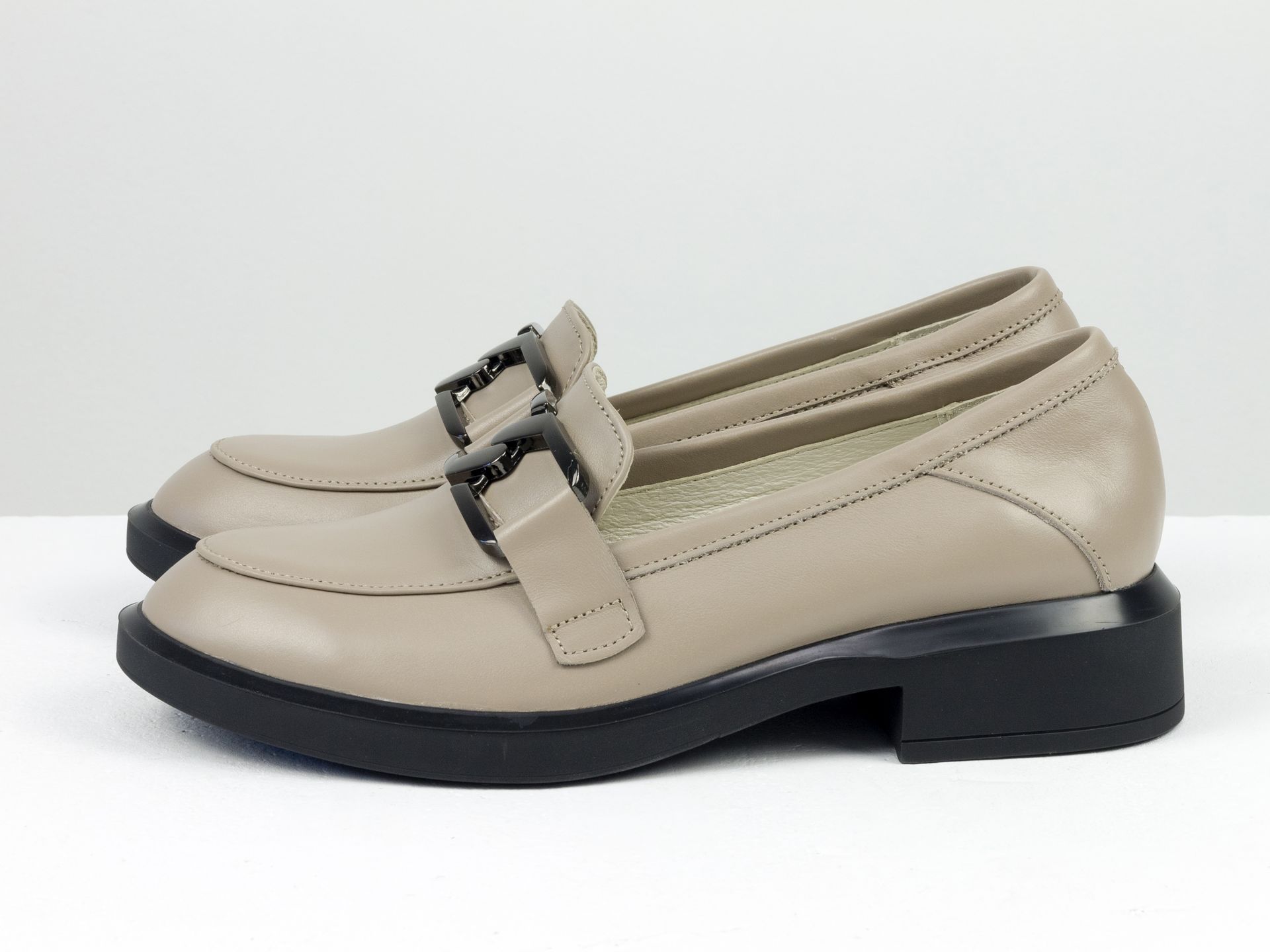 Женские туфли-лоферы из натуральной кожи бежевого цвета с цепочкой Gino Figini